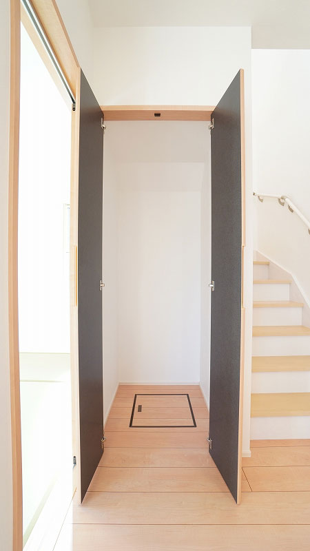 • 2階廊下にある便利な収納スペース。お部屋に入らないもの、2階で使うものなどを入れておけばわざわざ1階に降りる必要もありません!