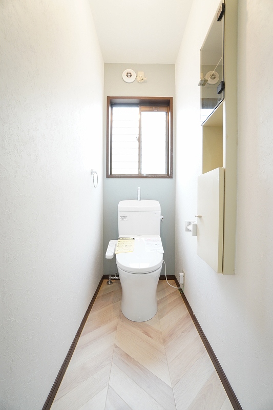 白でまとめられた、シンプルで清潔感を感じる新品のトイレ。1階、2階どちらにもあります。