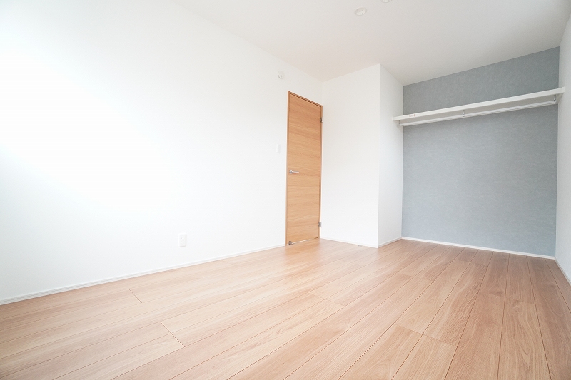 少し広めな2階主寝室。日当たり良好でバルコニーへも窓から出入りできます。 ウォークインクローゼットとも繋がっています。