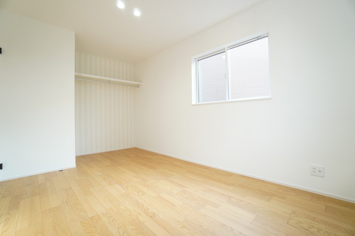 少し広めな2階主寝室。日当たり良好でバルコニーへも窓から出入りできます。 ウォークインクローゼットとも繋がっています。
