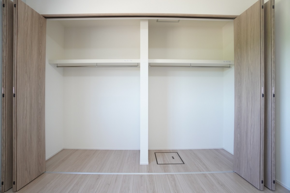 8帖洋室の収納。棚などを設置してもいいですね。