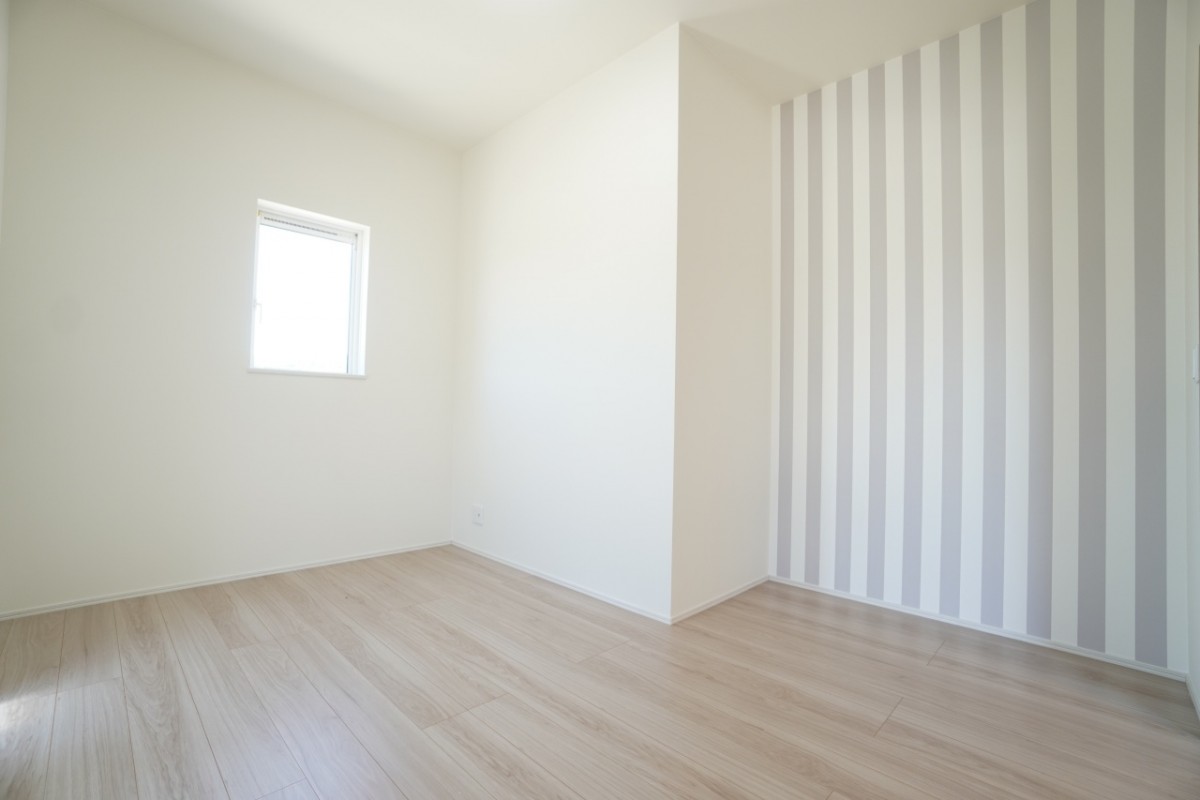 6帖洋室。リビングから少し離れたところにあり、プライバシーを守れます。また、リビングを通らないため、来客時にリビングを通したくないというご家族にもピッタリの間取りです。