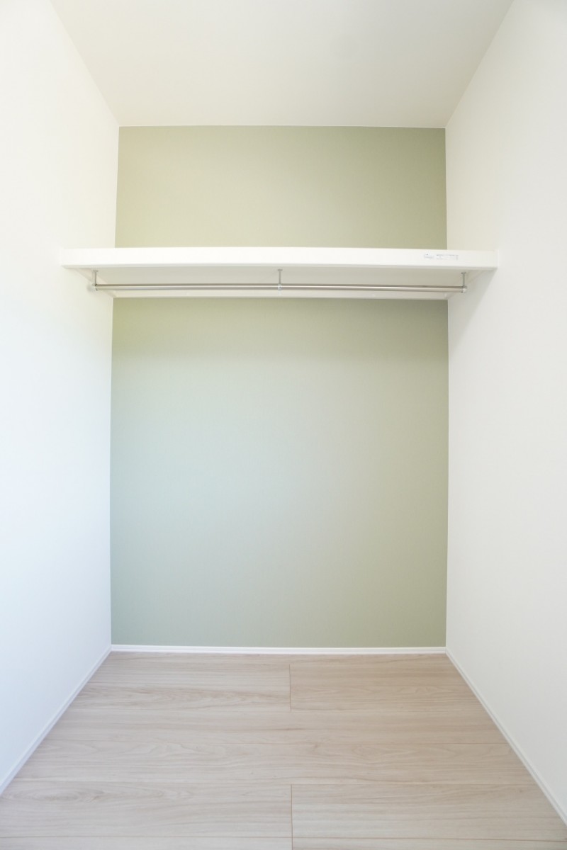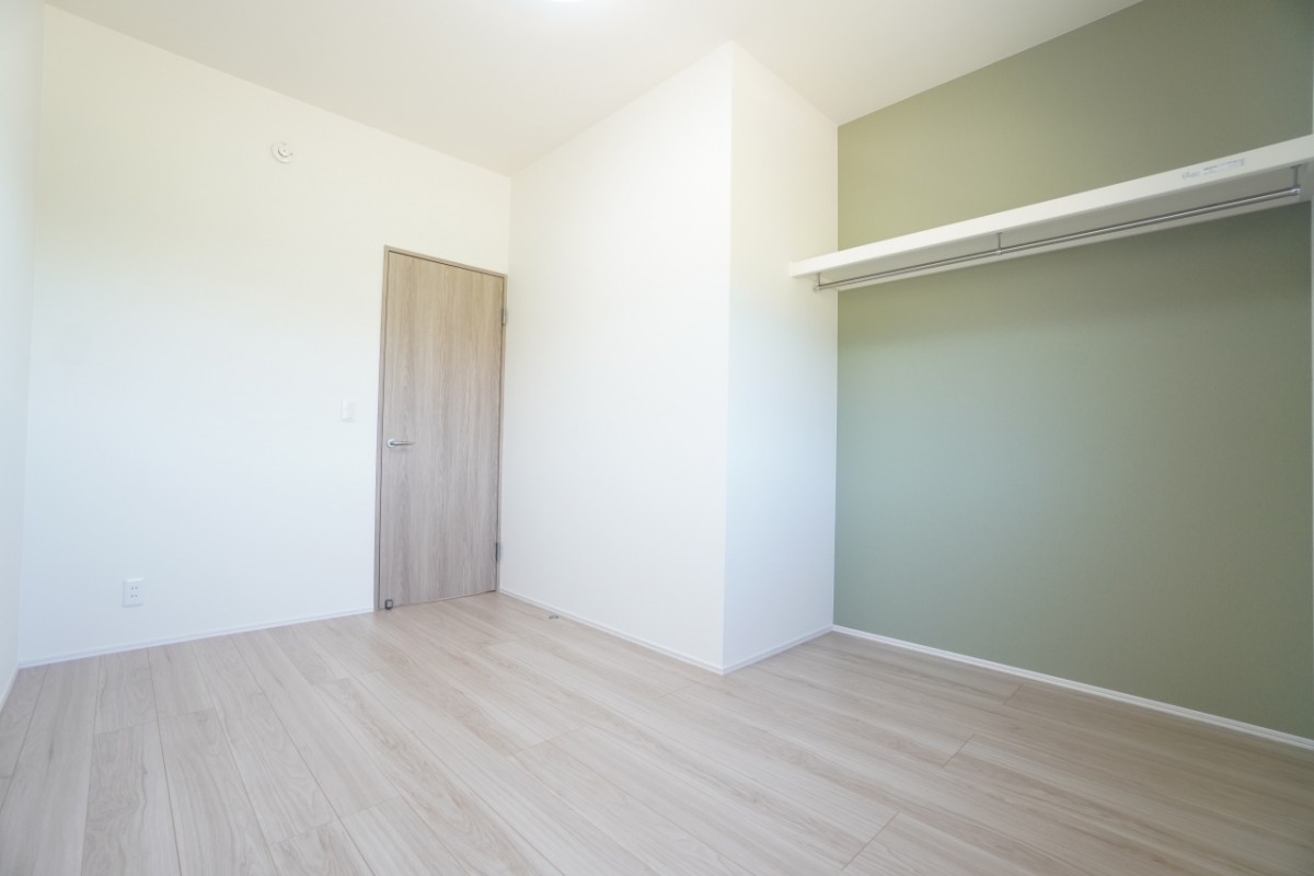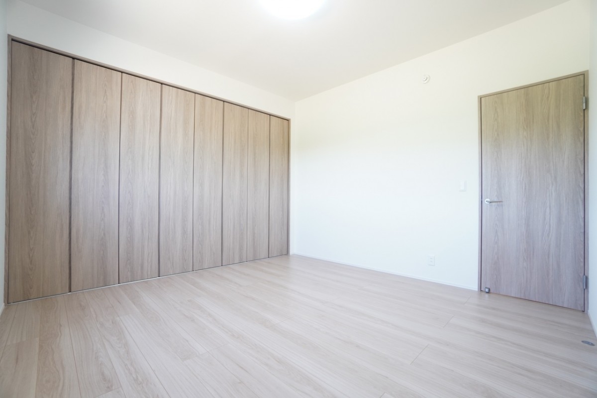 6帖洋室。広々したオープンクローゼットを採用しています。オープンクローゼットはロールカーテンを設置することで隠す収納にもすることができます。