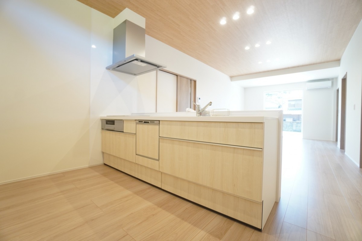 IHクッキングヒーターや食洗機など設備充実!キッチンからはリビングに設置してあるテレビを見ながら料理するもよし、子どもをリビングで遊ばせながら様子を見るのもよし。