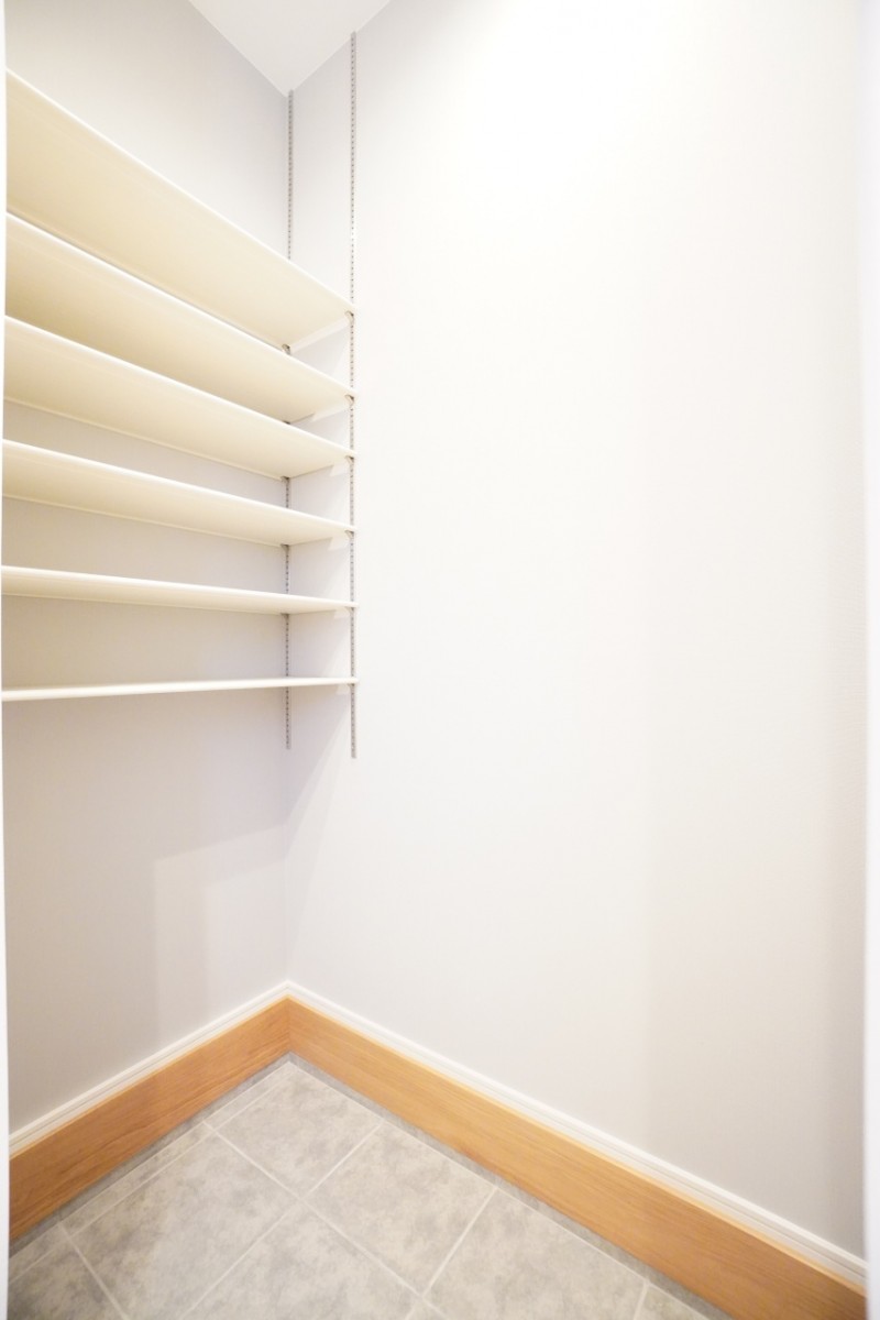 • 靴だけでなく、アウトドア用品やベビーカーなども置けるシューズクローク。玄関スペースと空間を分けているので、来客時にも清潔な印象を与えてくれます。