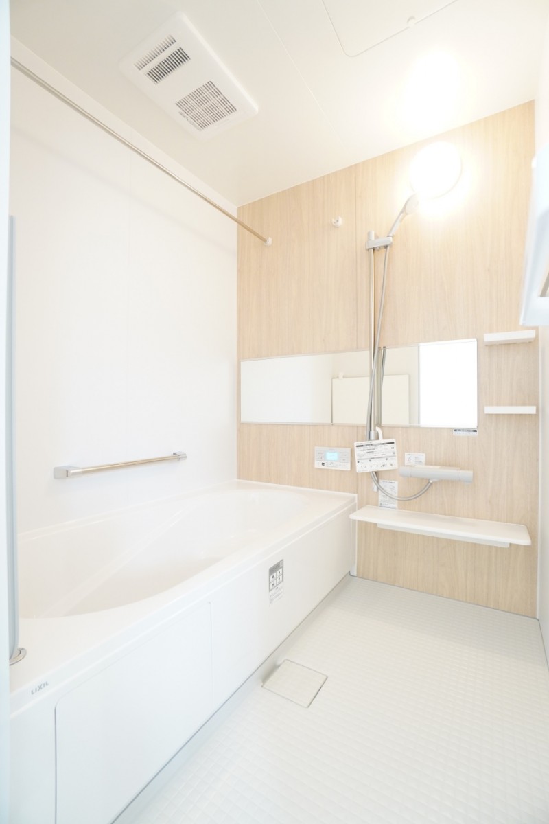 • 浴室乾燥機能の他に暖房や涼風などの機能もついています。 浴槽は腰かけ付き浴槽となっており、節水効果もあります。