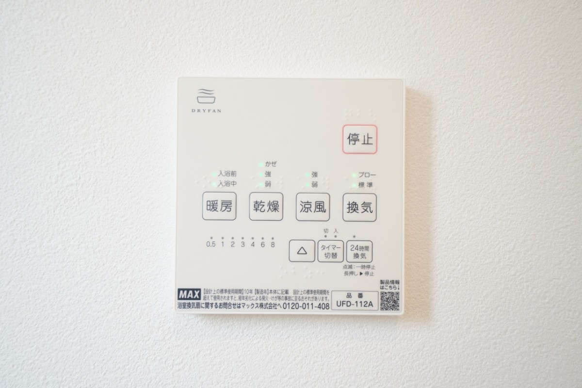 • 浴室の操作パネルです。浴室乾燥や暖房、涼風など機能が充実!ヒートショック防止には欠かせない機能です。