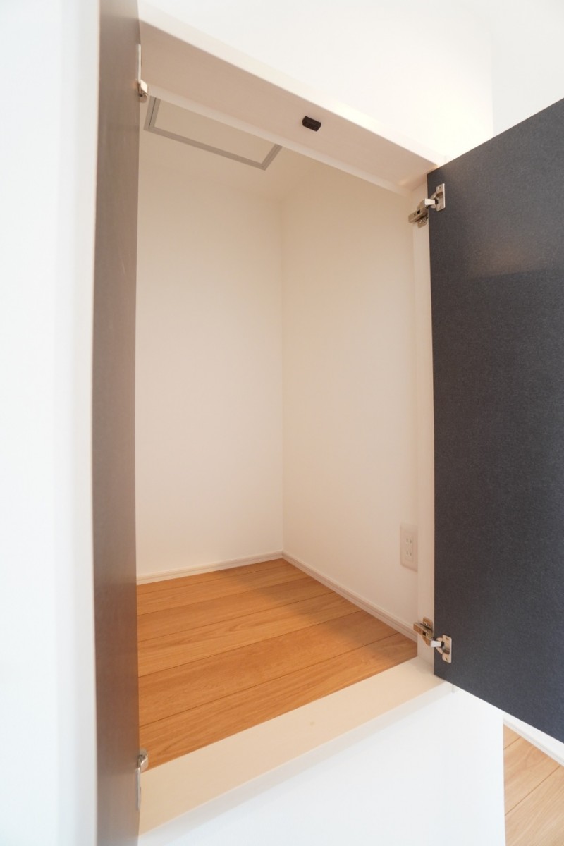 玄関収納はトイレ、洗面所、浴室にも近いため買ってきたストック用品の一時保管場所として使っていただくのもよさそうです。