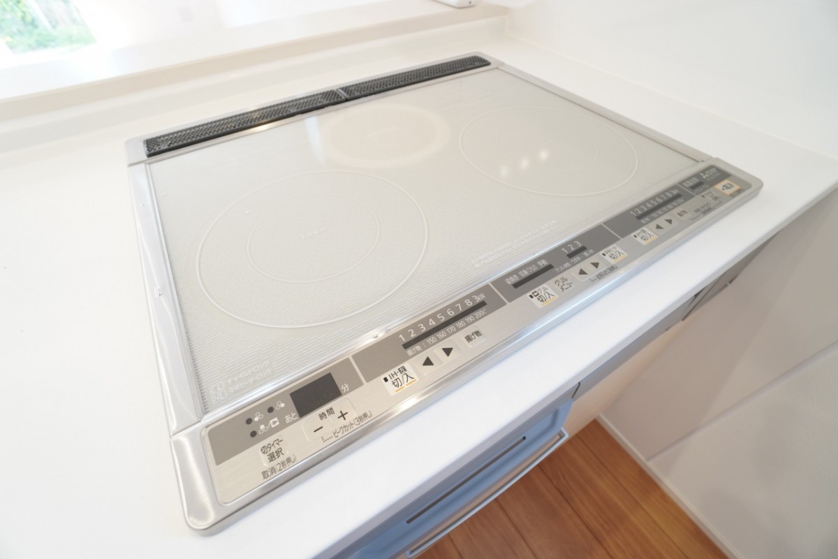 IHコンロは火を使わないので小さいお子様がいても安心です。キッチンパネルは凹凸がなく、お手入れが簡単です。