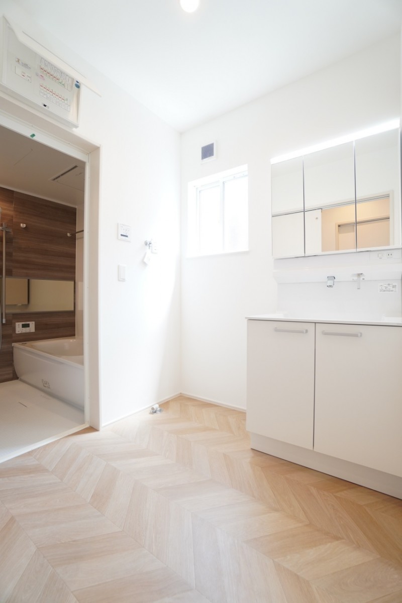 鏡裏に収納スペースがある洗面台を採用。小物を隠せるため、見た目がスッキリします♪鏡には曇り止めコート加工付きです。
