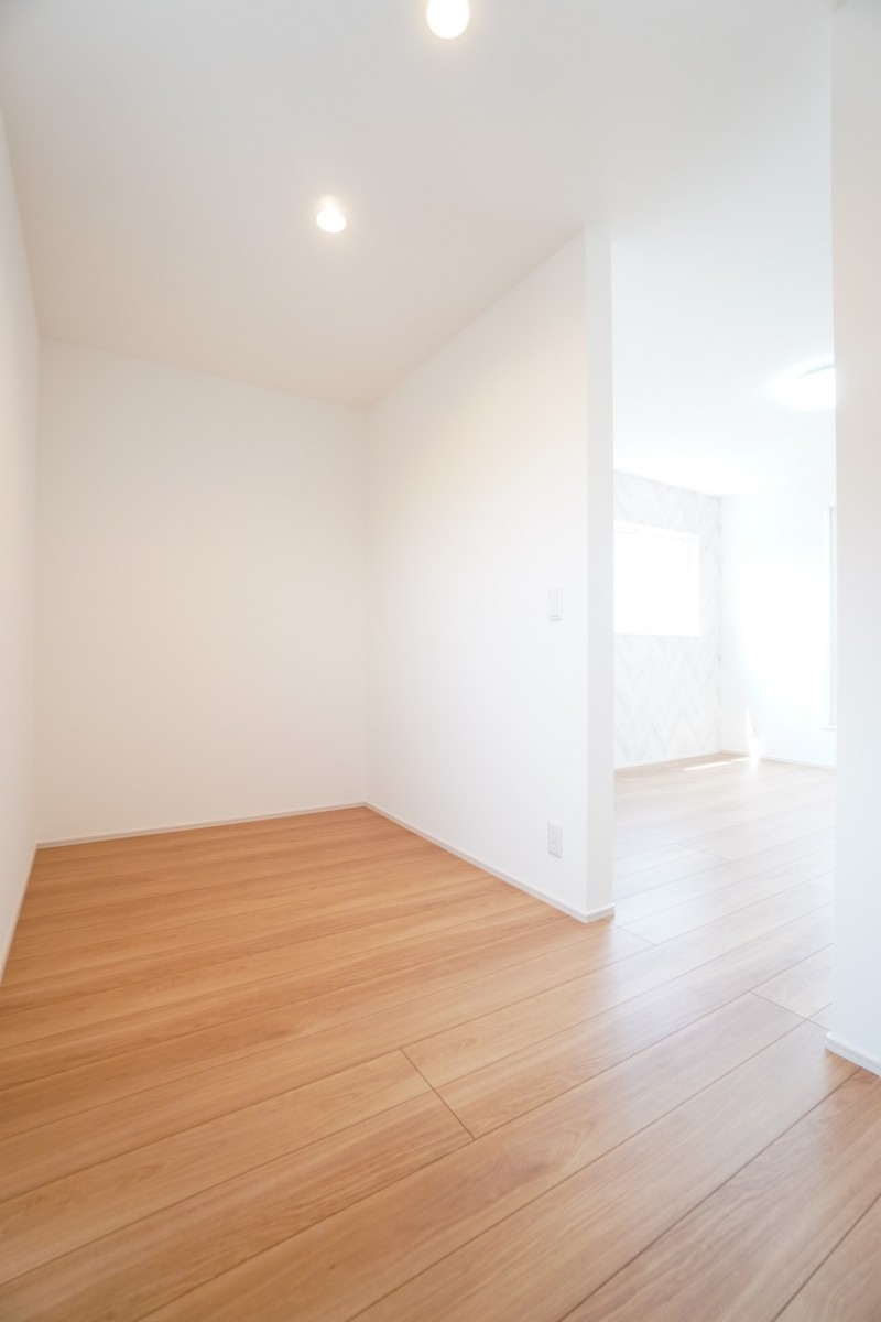 1階6帖洋室。収納あり、小さなお子様を遊ばせる部屋や1階の寝室としても利用できます。