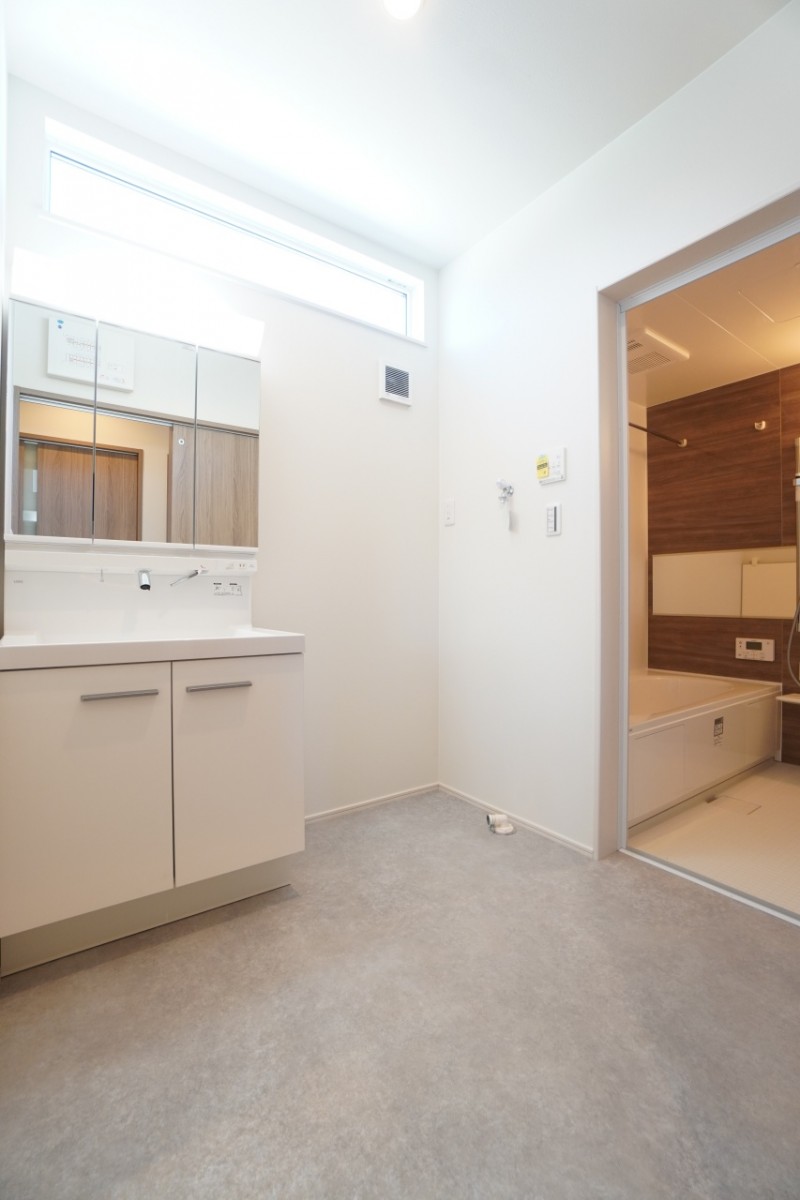 鏡裏に収納スペースがある洗面台を採用。小物を隠せるため、見た目がスッキリします♪鏡には曇り止めコート加工付きです。
