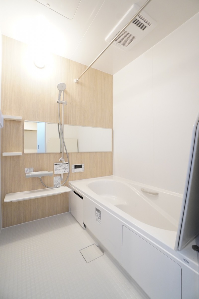 一坪浴槽で快適な入浴を♪浴室乾燥も付いています!節水型シャワーヘッドを採用しており、水道代の節約にもつながります。