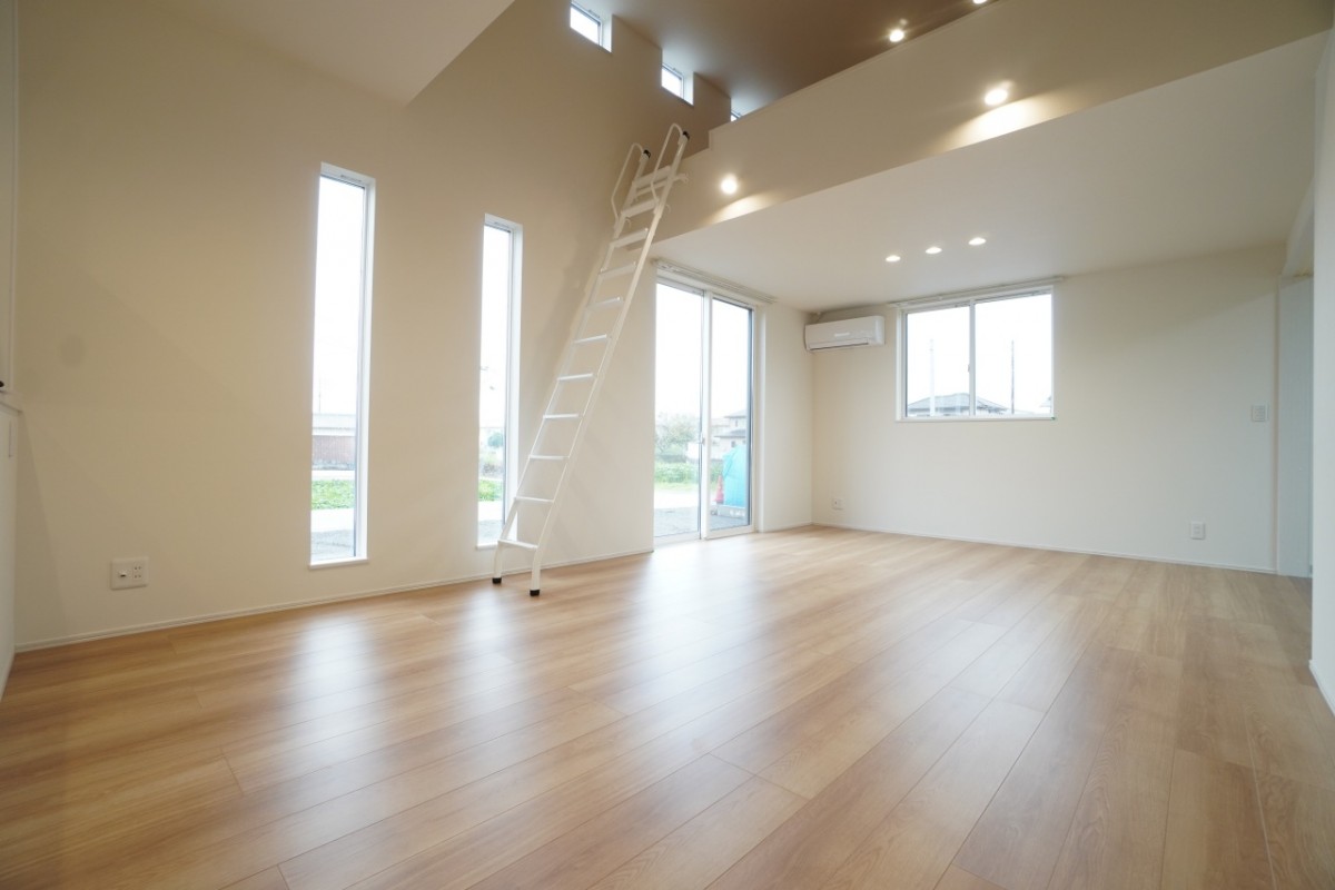 18帖リビングの別角度の写真です。晴れた日は窓から明るい日差しが差し込みます。