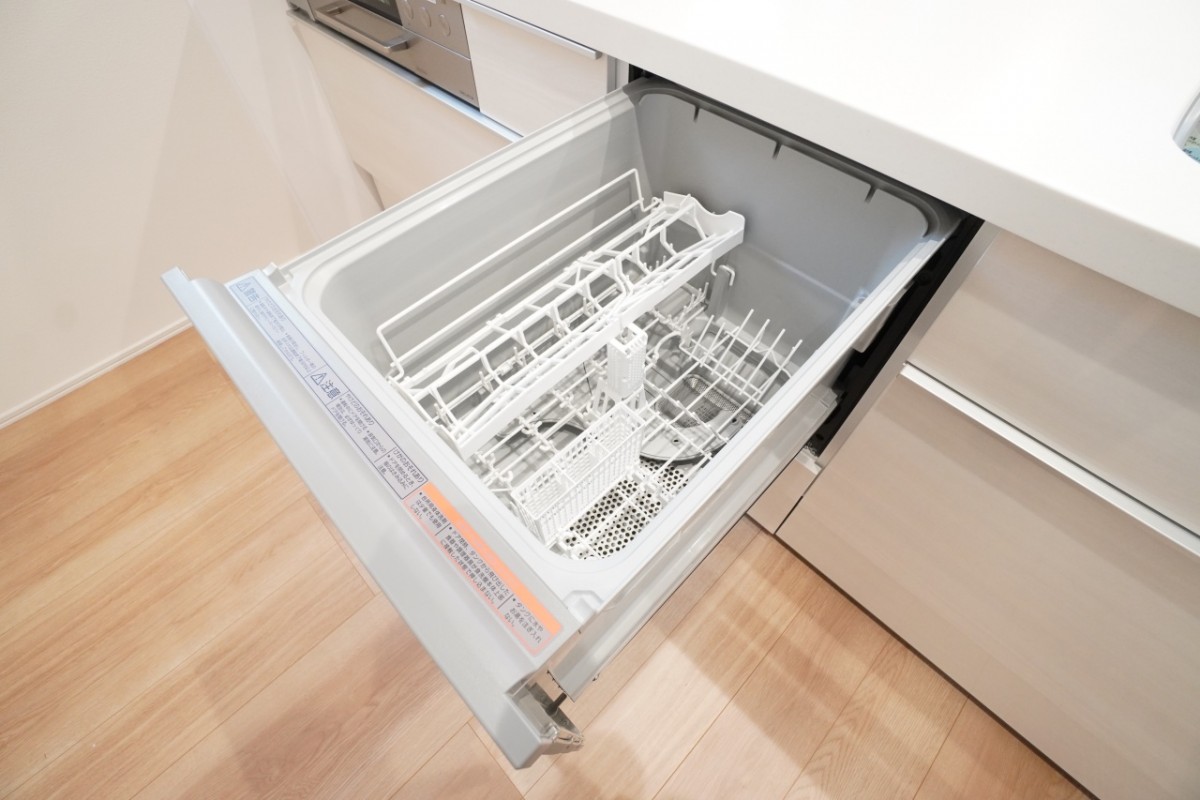 キッチンにはビルトイン食器洗浄乾燥機がついています。面倒な食器洗いもお任せ♪手洗い派の人も乾燥機として使っていただけます。