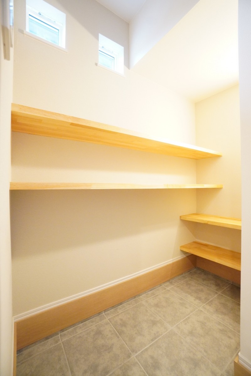 キッチン横の収納スペース。パントリーとして使えます。買いだめができてキッチンのスペースを確保できますね♪