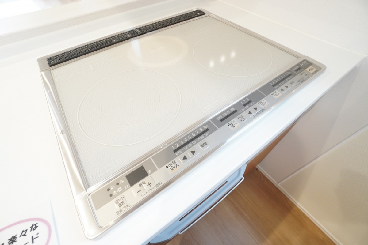 IHコンロは火を使わないので小さいお子様がいても安心です。キッチンパネルは凹凸がなく、お手入れが簡単です。