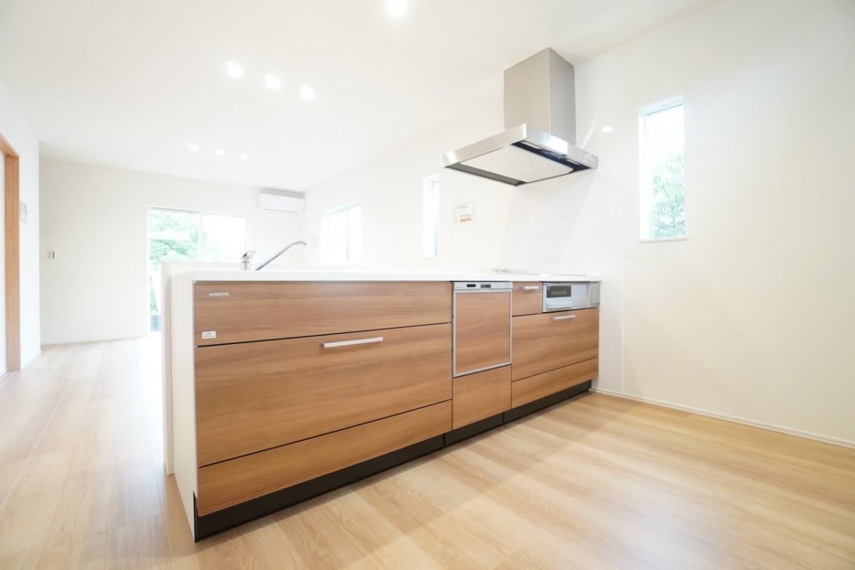 食洗機やIHクッキングヒーターなど充実した設備のオープンキッチン。オープンキッチンは料理中もリビングの様子が見れると人気です。
