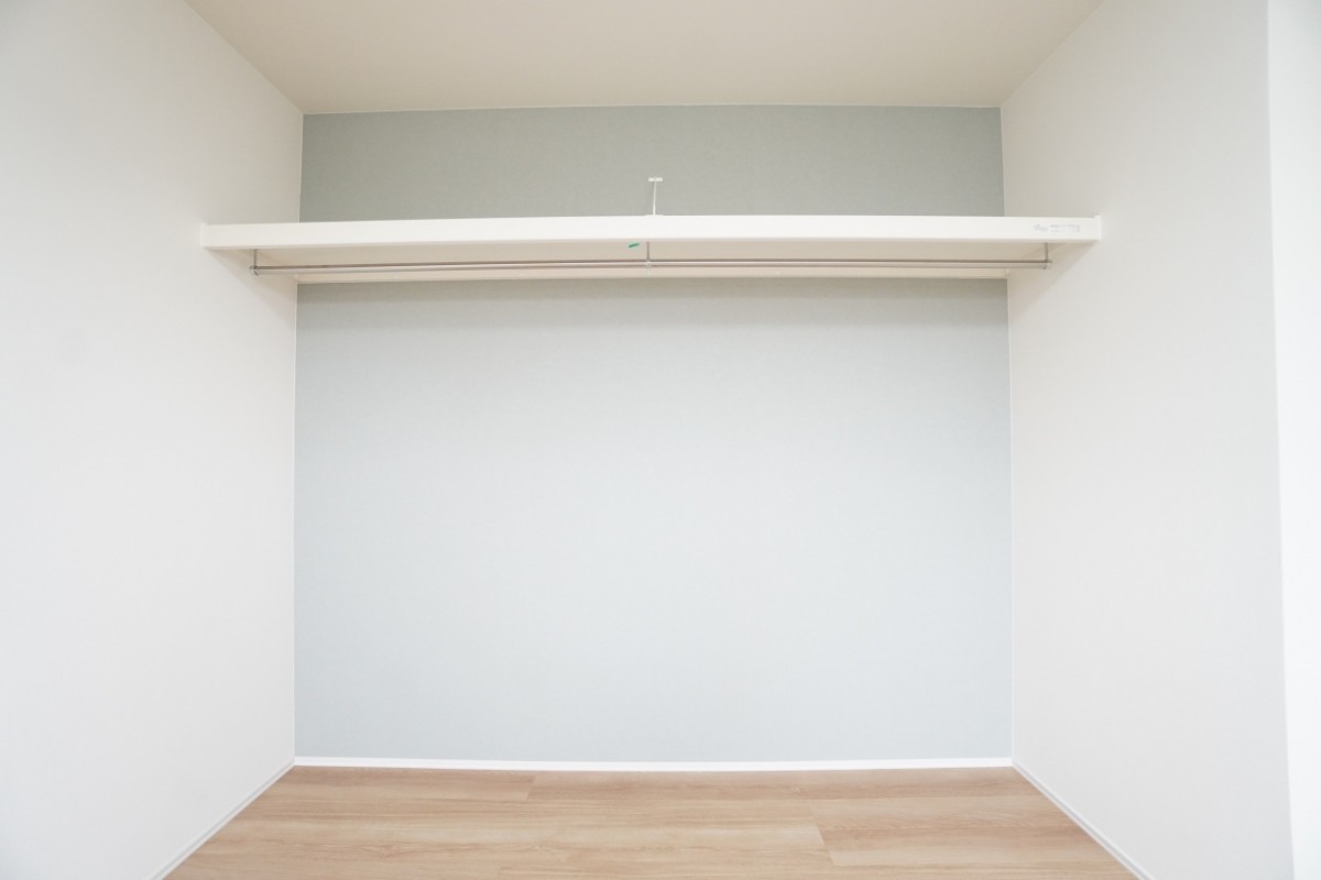 オープンクローゼットは湿気が溜まりづらくカビにくいなどのメリットがあります。また、アクセントクロスを使用することで部屋の印象がガラッと変わります。