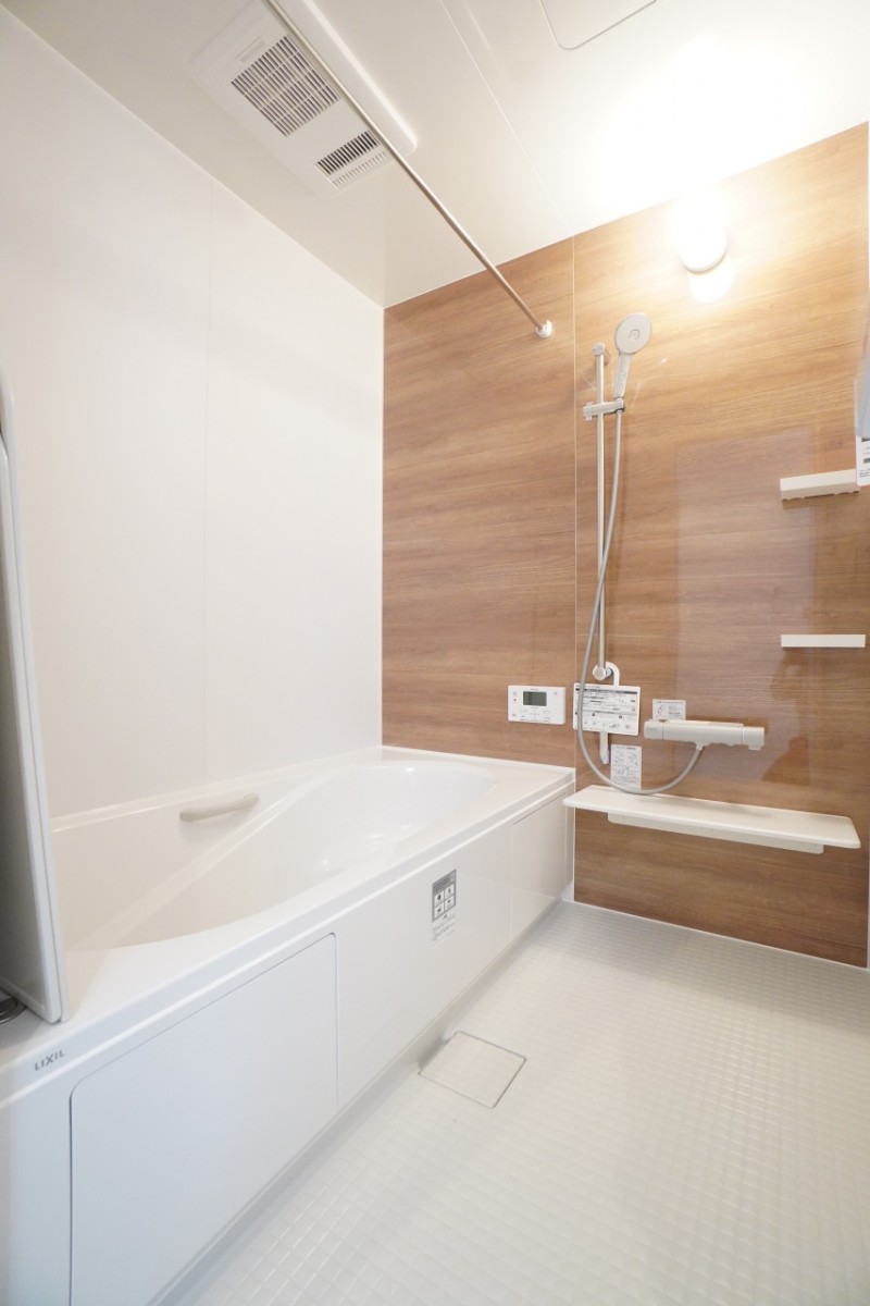 浴室乾燥機能の他に暖房や涼風などの機能もついています。 浴槽は腰かけ付き浴槽となっており、節水効果もあります。