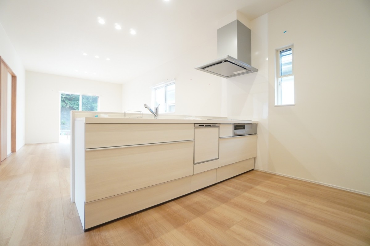 家族とコミュニケーションがとりやすいオープンキッチン。お子様の様子を見ながら家事をしていただけます。