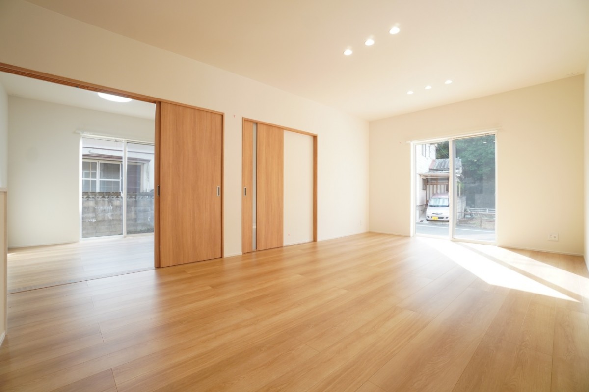 4.5帖洋室。リビングと3枚扉で繋がっています♪収納あり、小さなお子様を遊ばせる部屋や1階の寝室としても利用できます。