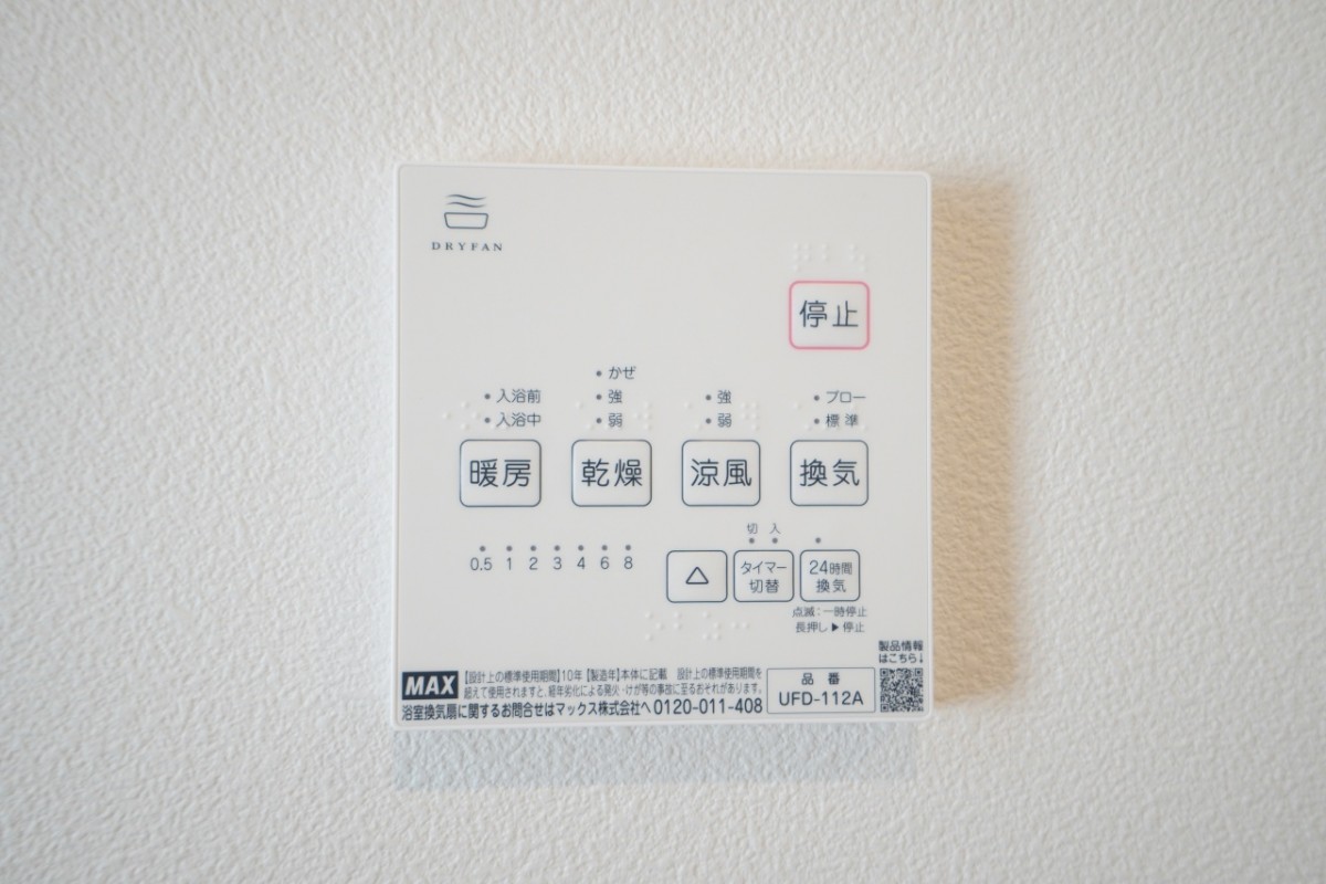 浴室の操作パネルです。浴室乾燥や暖房、涼風など機能が充実!ヒートショック防止には欠かせない機能です