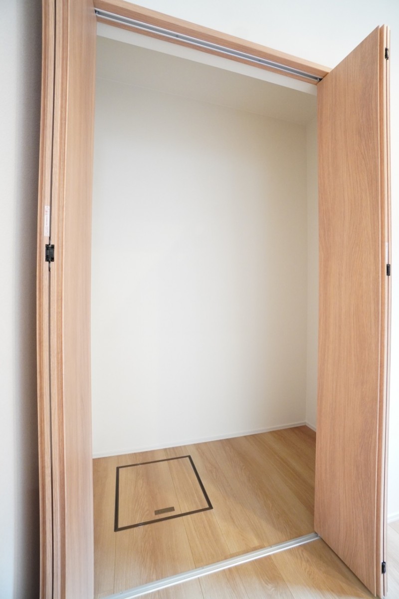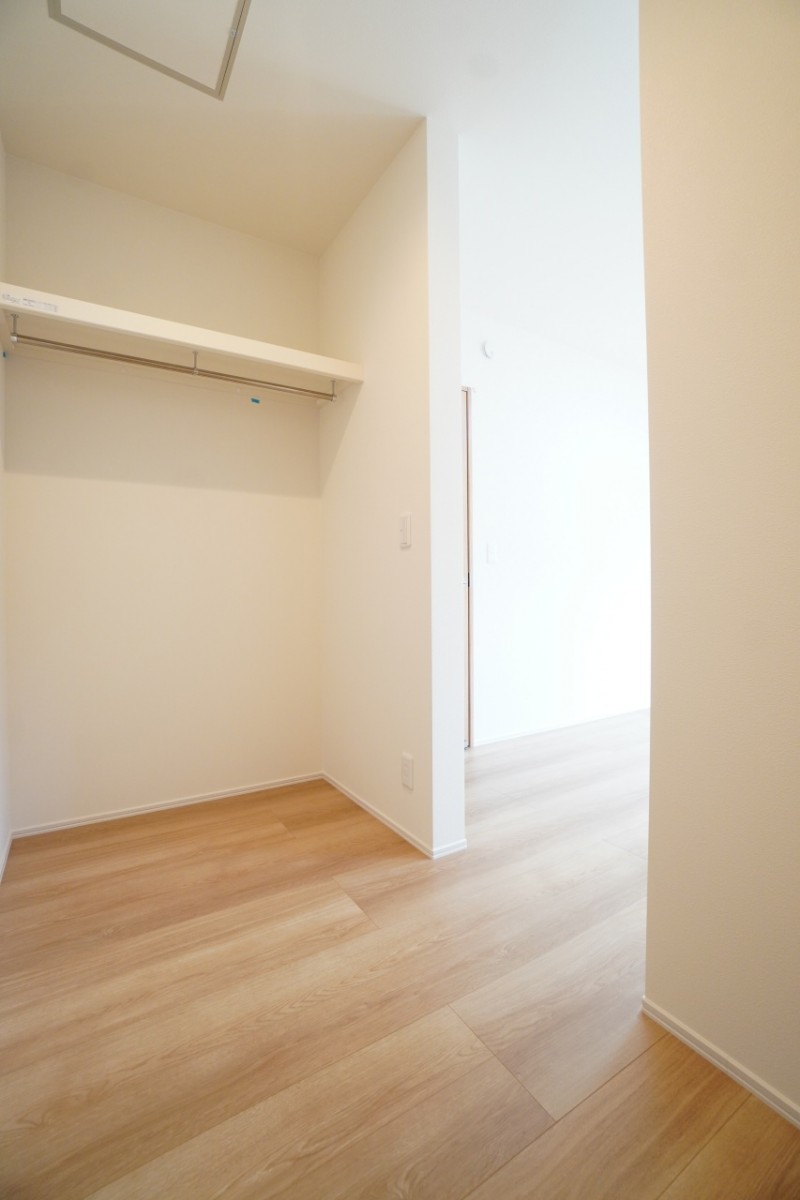 大きい荷物も入るウォークインクローゼット!備え付けの棚などがないため、使い方は自由自在。広々としたスペースがあるため、書斎や趣味部屋としても利用していただくこともできます。