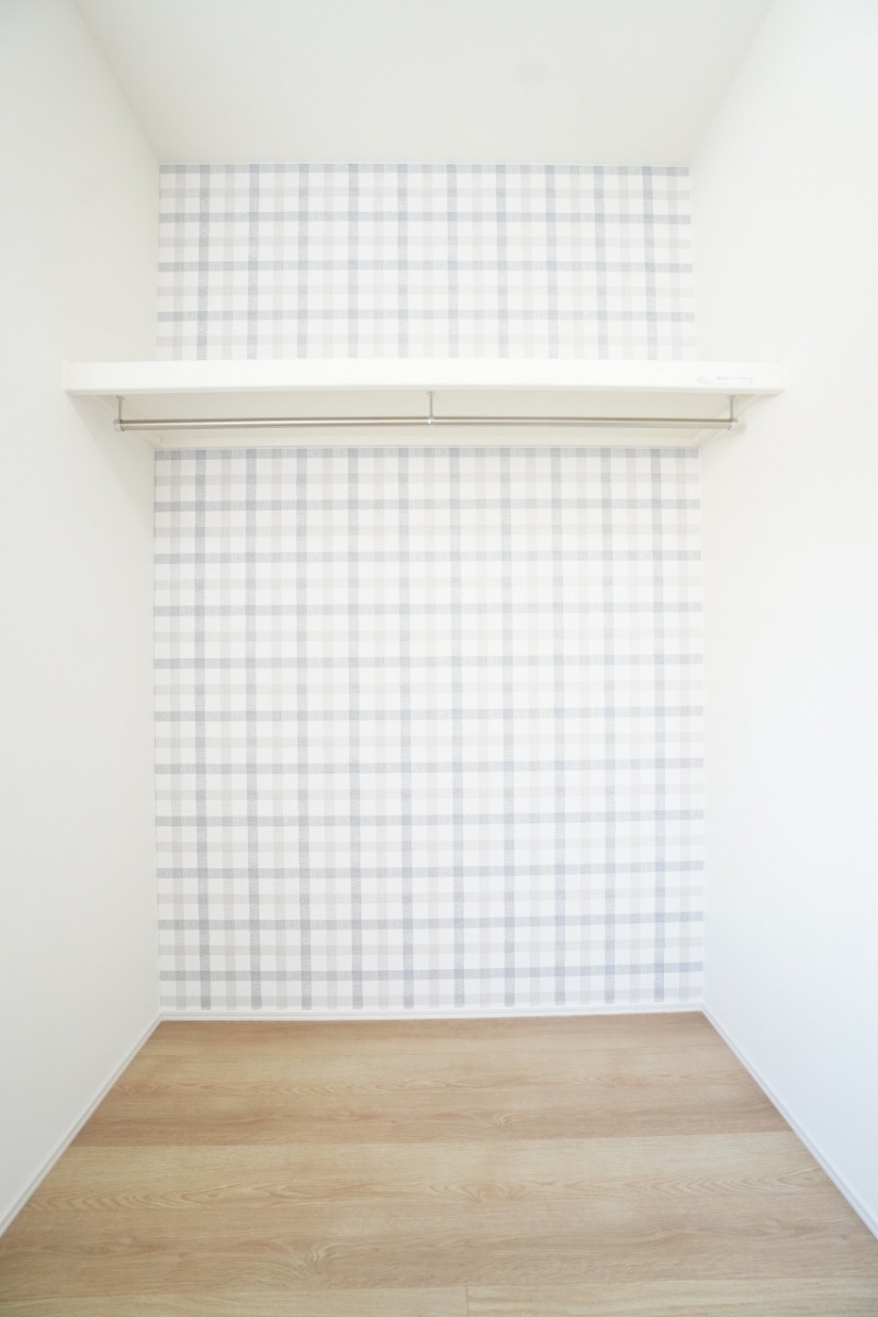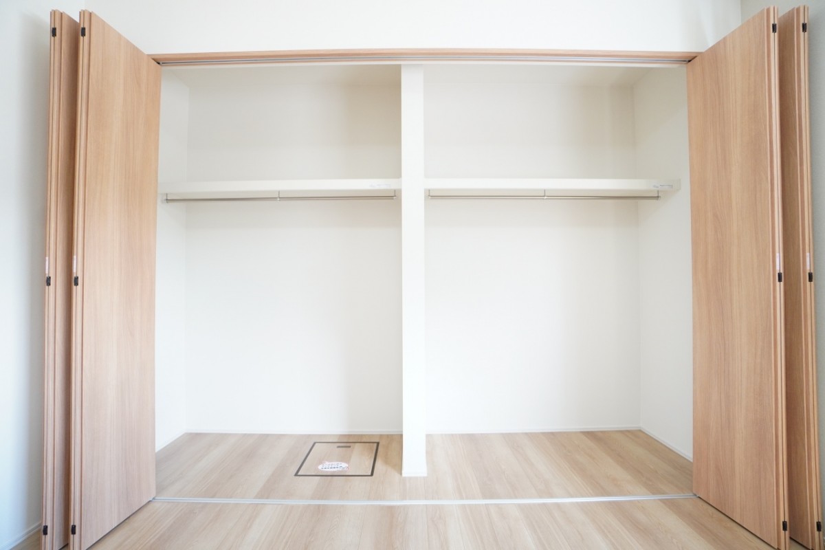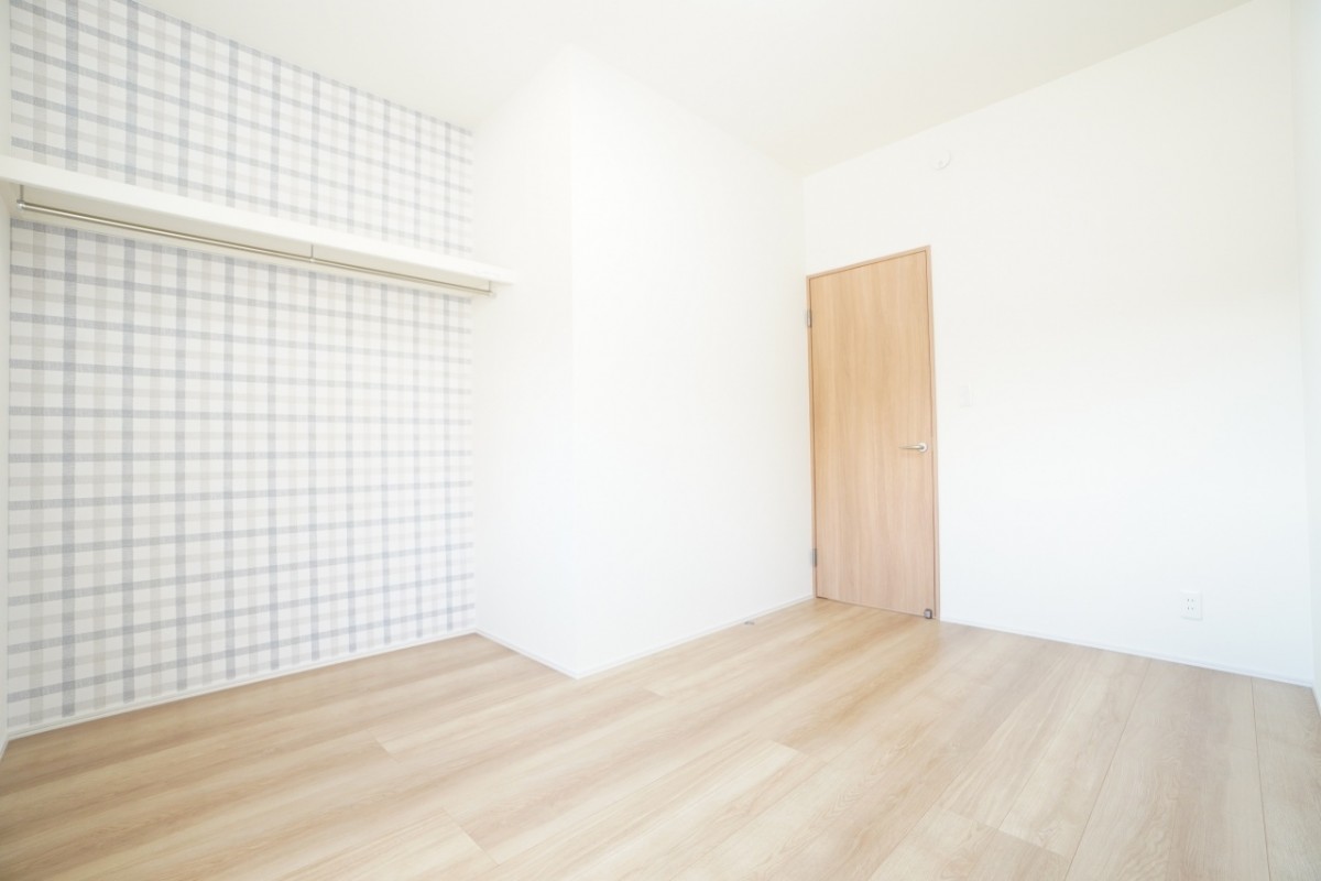 6帖洋室。広々したオープンクローゼットを採用しています。オープンクローゼットはロールカーテンを設置することで隠す収納にもすることができます。