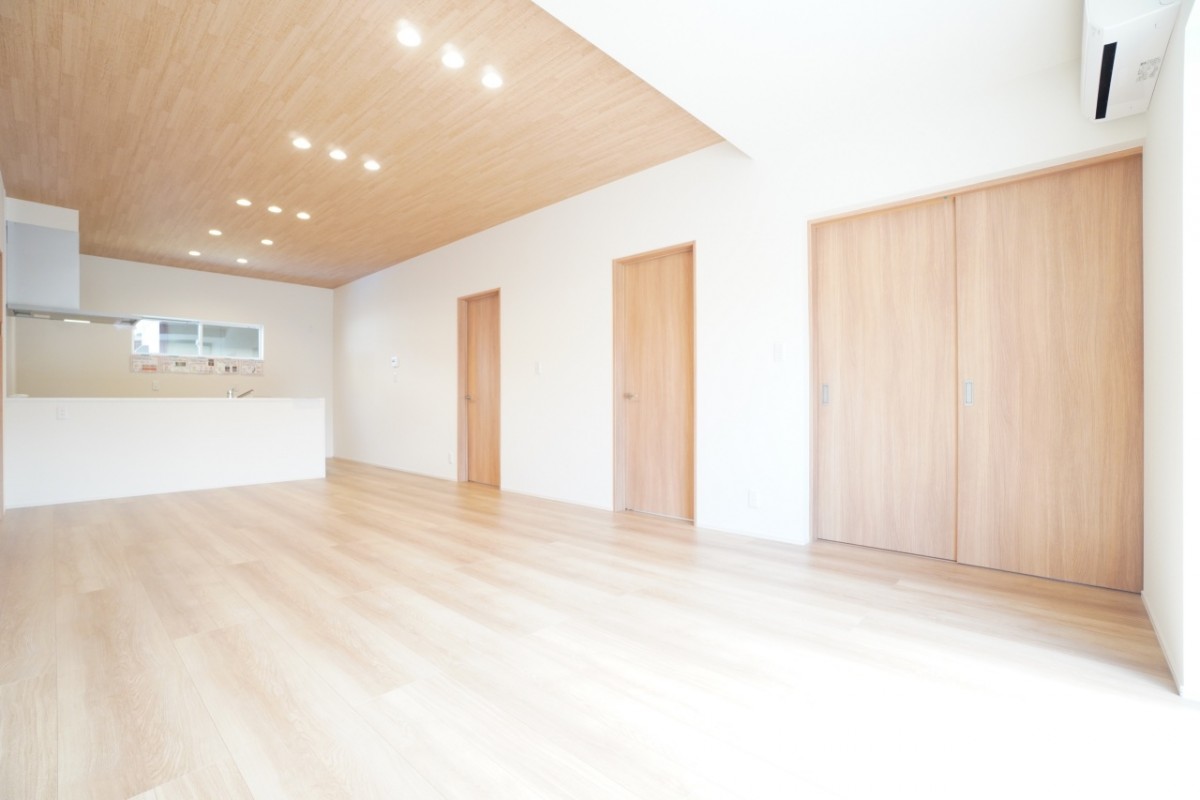 20帖の広さがあり、天井が1段高くなっていることやオープンキッチンを採用することで、より開放的な空間になっています♪