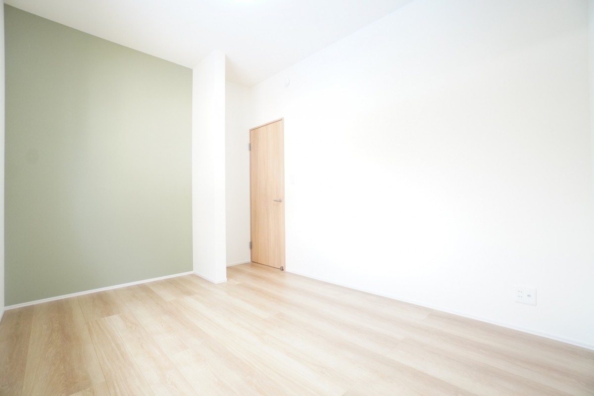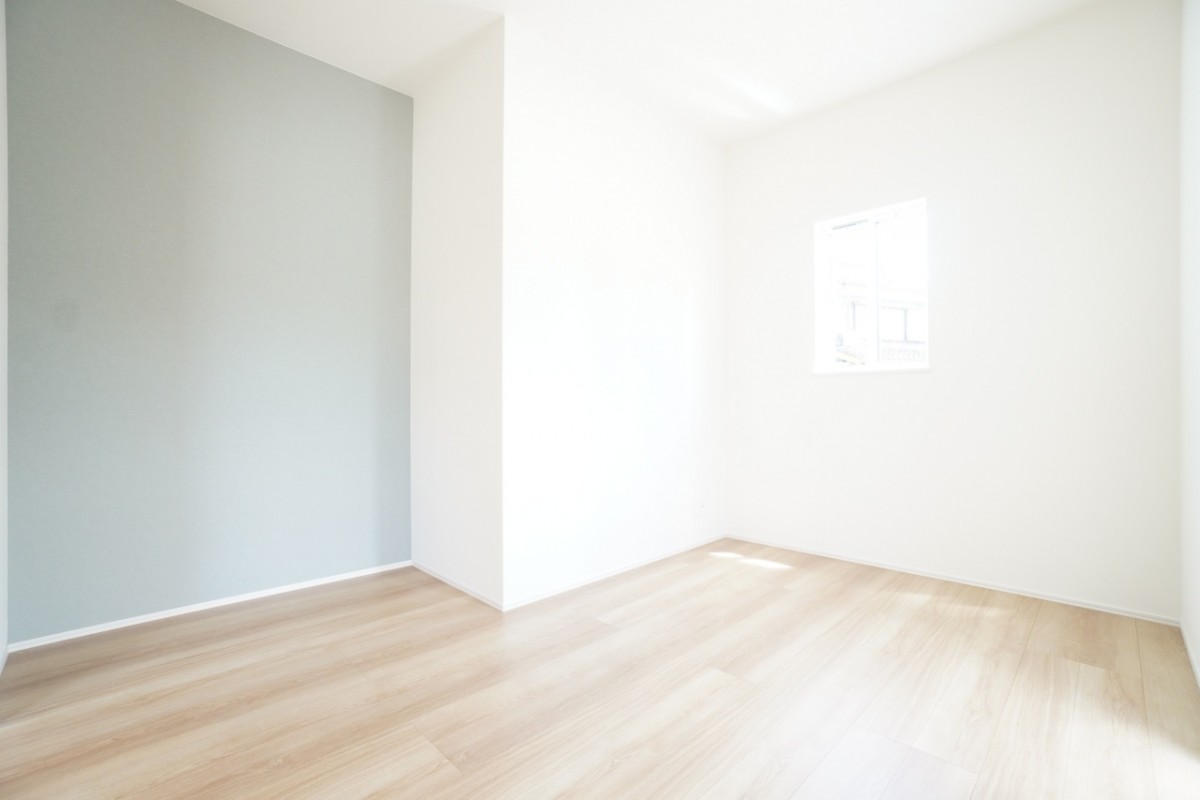 6帖洋室。リビングから少し離れたところにあり、プライバシーを守れます。また、リビングを通らないため、来客時にリビングを通したくないというご家族にもピッタリの間取りです。