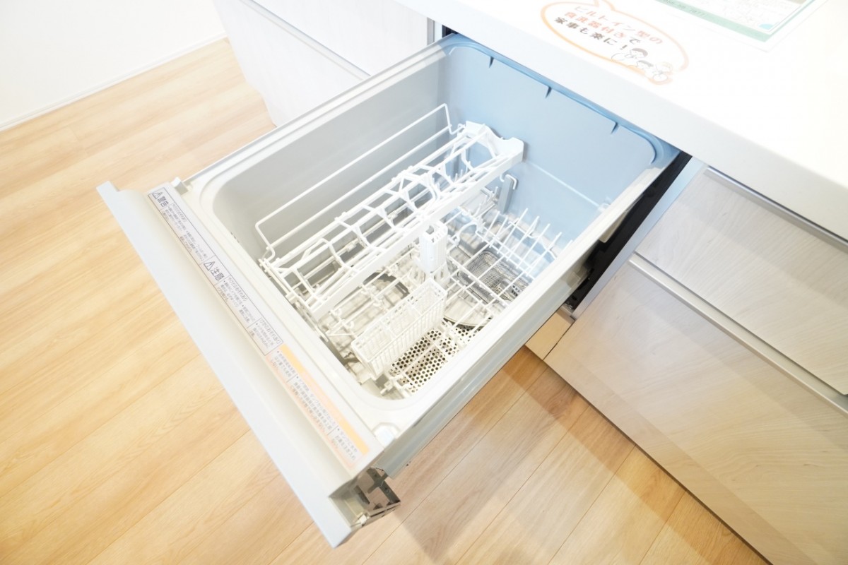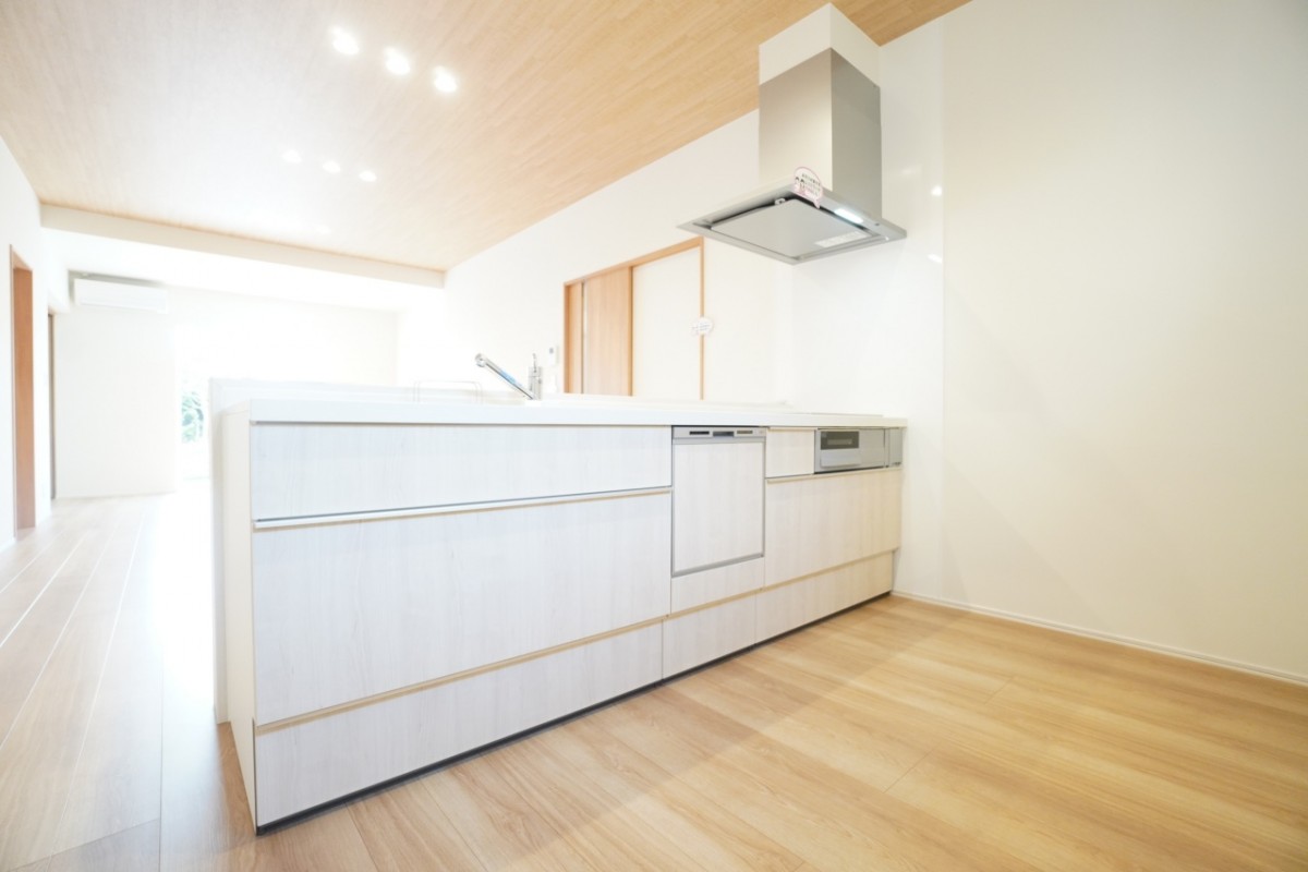 IHクッキングヒーターや食洗機など設備充実!キッチンからはリビングに設置してあるテレビを見ながら料理するもよし、子どもをリビングで遊ばせながら様子を見るのもよし。