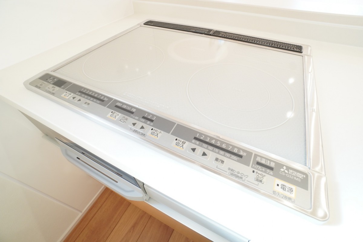 IHコンロは火を使わないので小さいお子様がいても安心です。キッチンパネルは凹凸がなく、お手入れが簡単です。