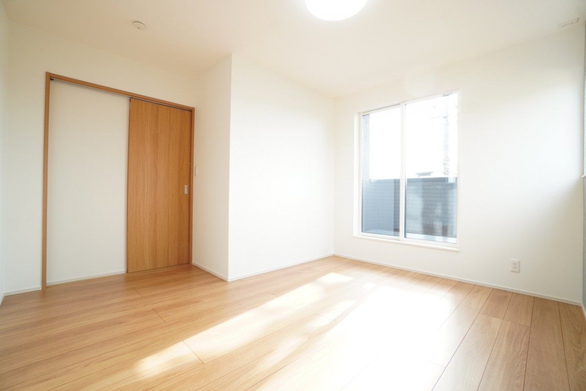 1階6帖洋室。収納あり、小さなお子様を遊ばせる部屋や1階の寝室としても利用できます。