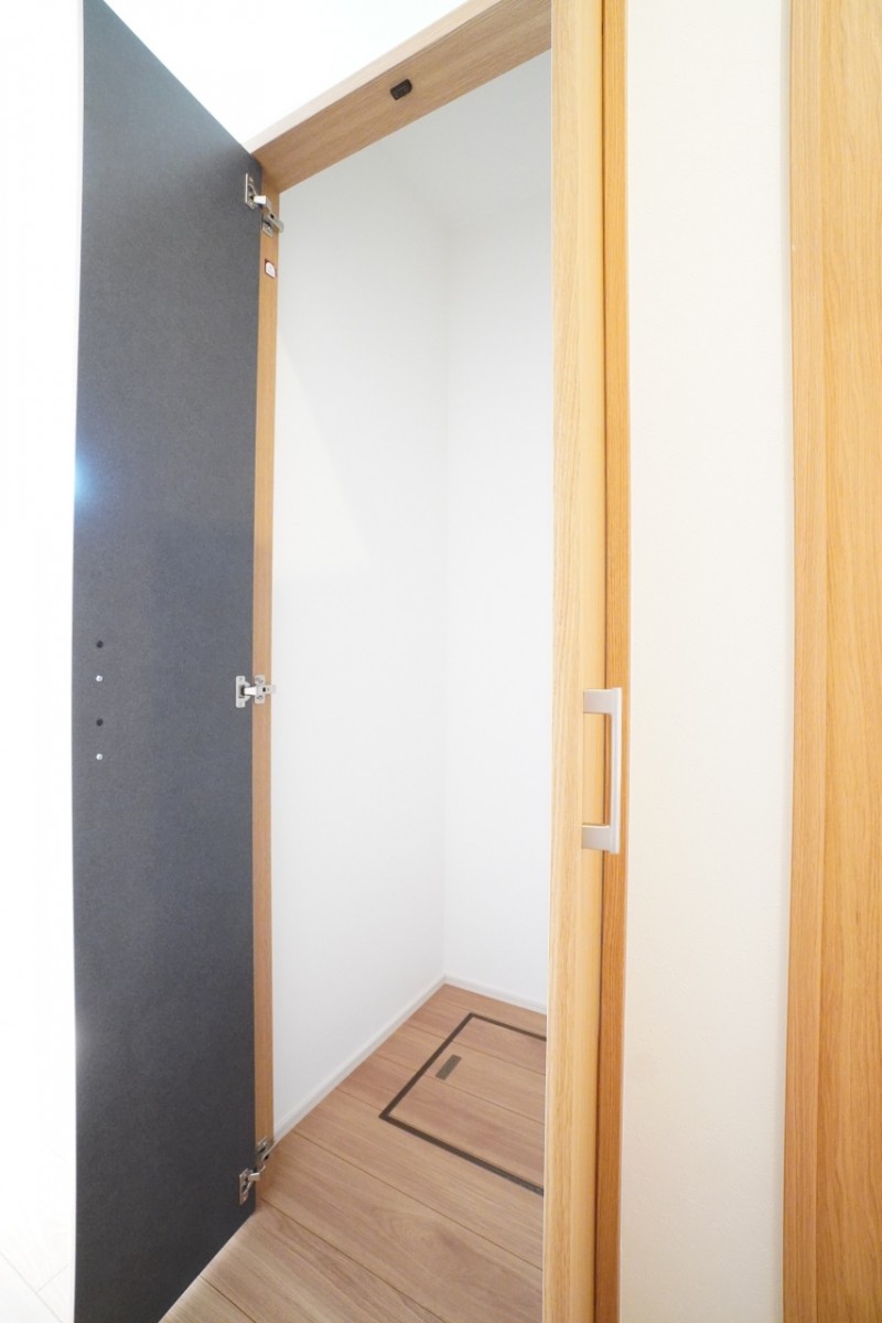 玄関収納はトイレ、洗面所、浴室にも近いため買ってきたストック用品の一時保管場所として使っていただくのもよさそうです。