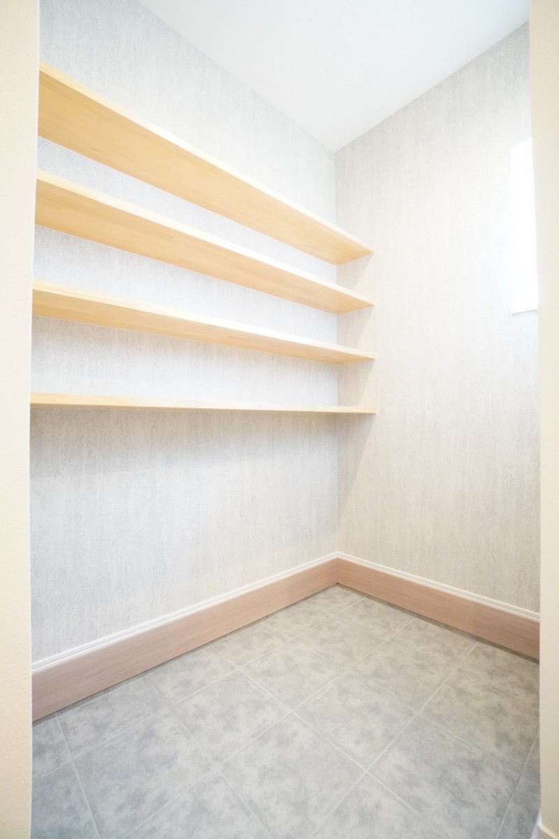 靴だけでなく、アウトドア用品やベビーカーなども置けるシューズクローク。 玄関からは見えにくい位置にありますので、あまり見られたくないと思っている方にも嬉しい仕様です。