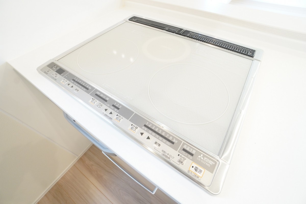 IHコンロは火を使わないので小さいお子様がいても安心です。キッチンパネルは凹凸がなく、お手入れが簡単です。