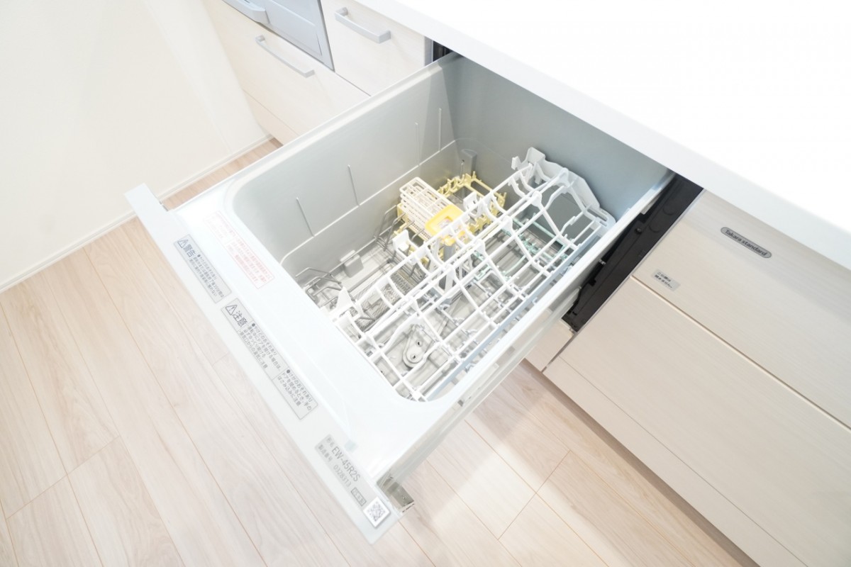 キッチンにはビルトイン食器洗浄乾燥機がついています。面倒な食器洗いもお任せ♪手洗い派の人も乾燥機として使っていただけます。