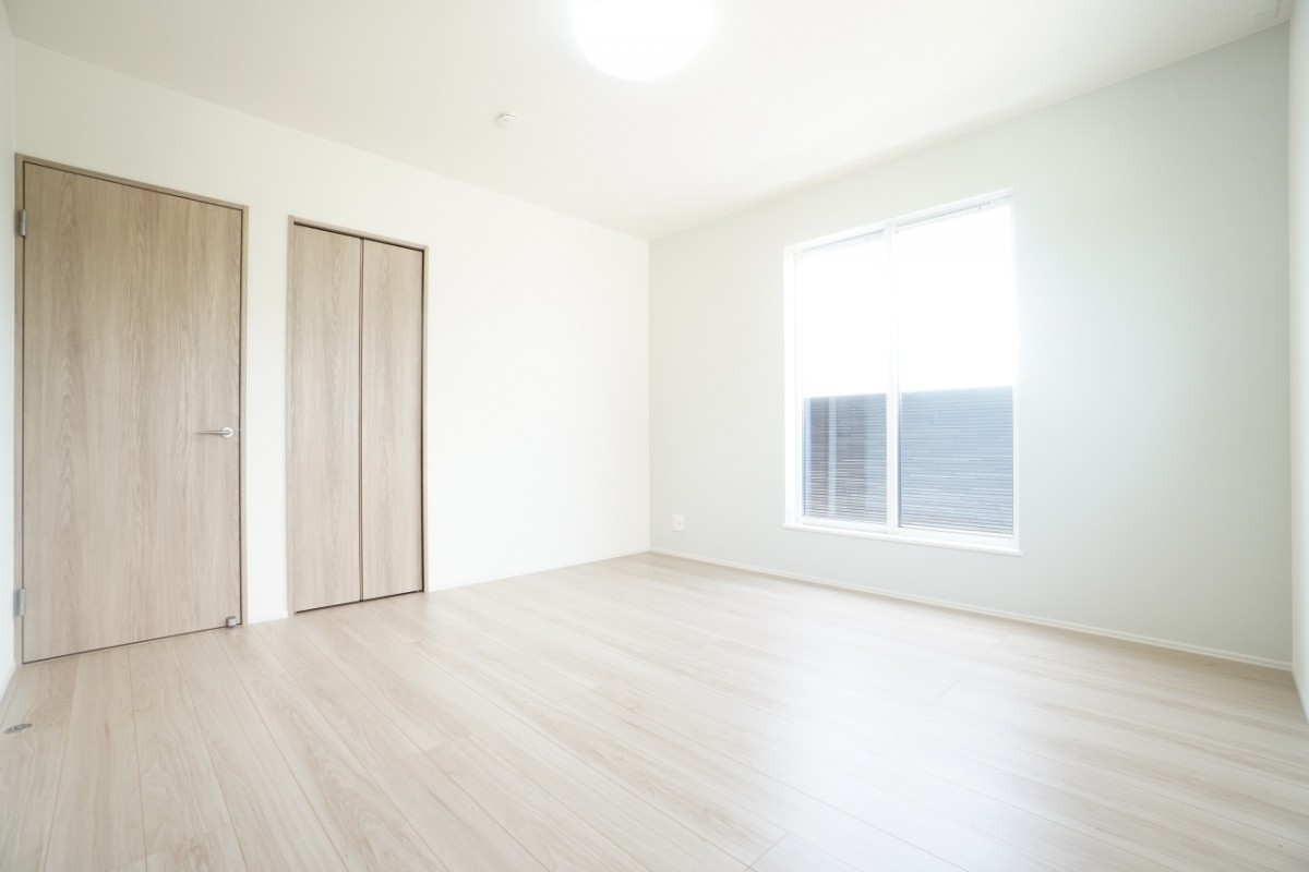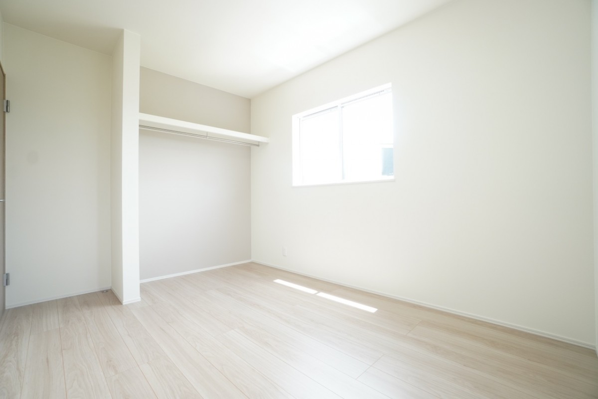 2階6帖洋室。オープンクローゼットを採用することで部屋のスペースを無駄なく使えます。 窓からはあたたかい陽射しも差し込んでおり、明るい空間を確保しています。