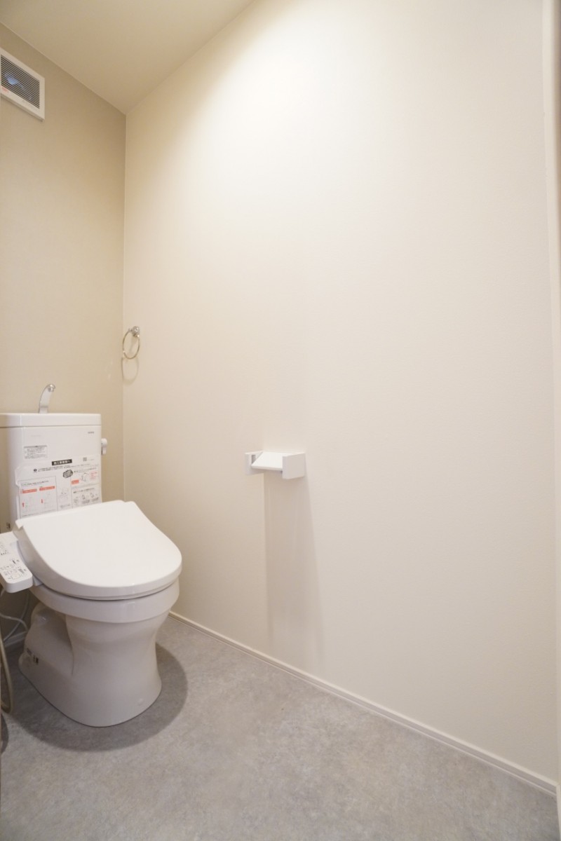 • スタイリッシュなデザインのタンクレストイレを採用!タンクありのトイレと比べると1回あたりに使用する水の量はなんと1/3以下。