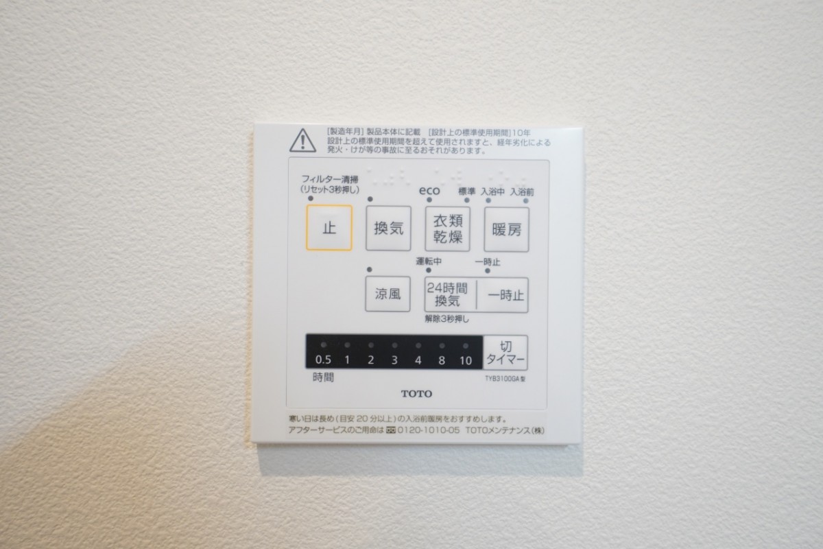 • 浴室操作パネルです。浴室乾燥や暖房、涼風など機能が充実! ヒートショック防止には欠かせない機能です。