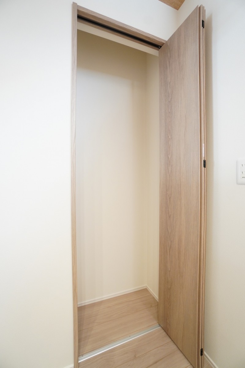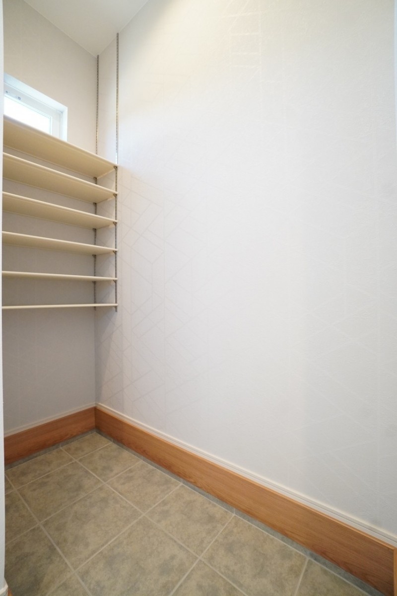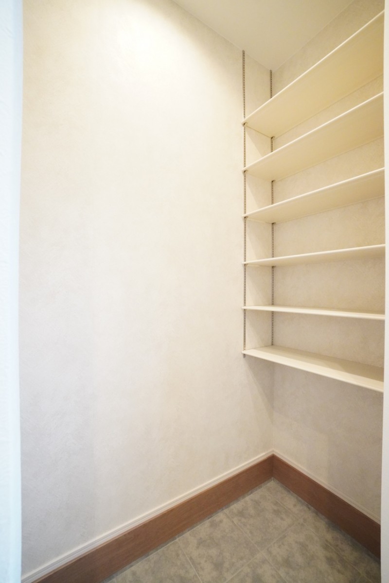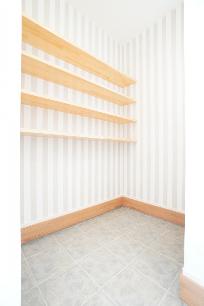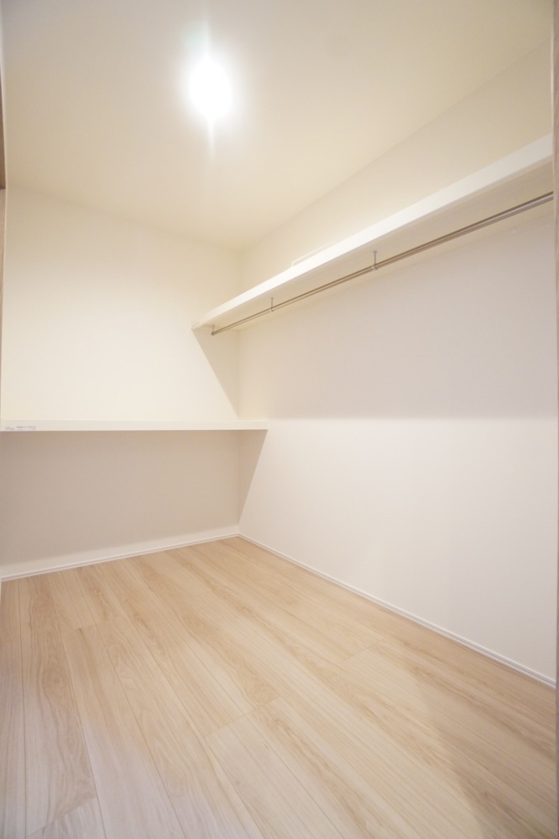 各所に収納スペースがあり、家事動線も最短距離なところがこの物件の最大のポイント。