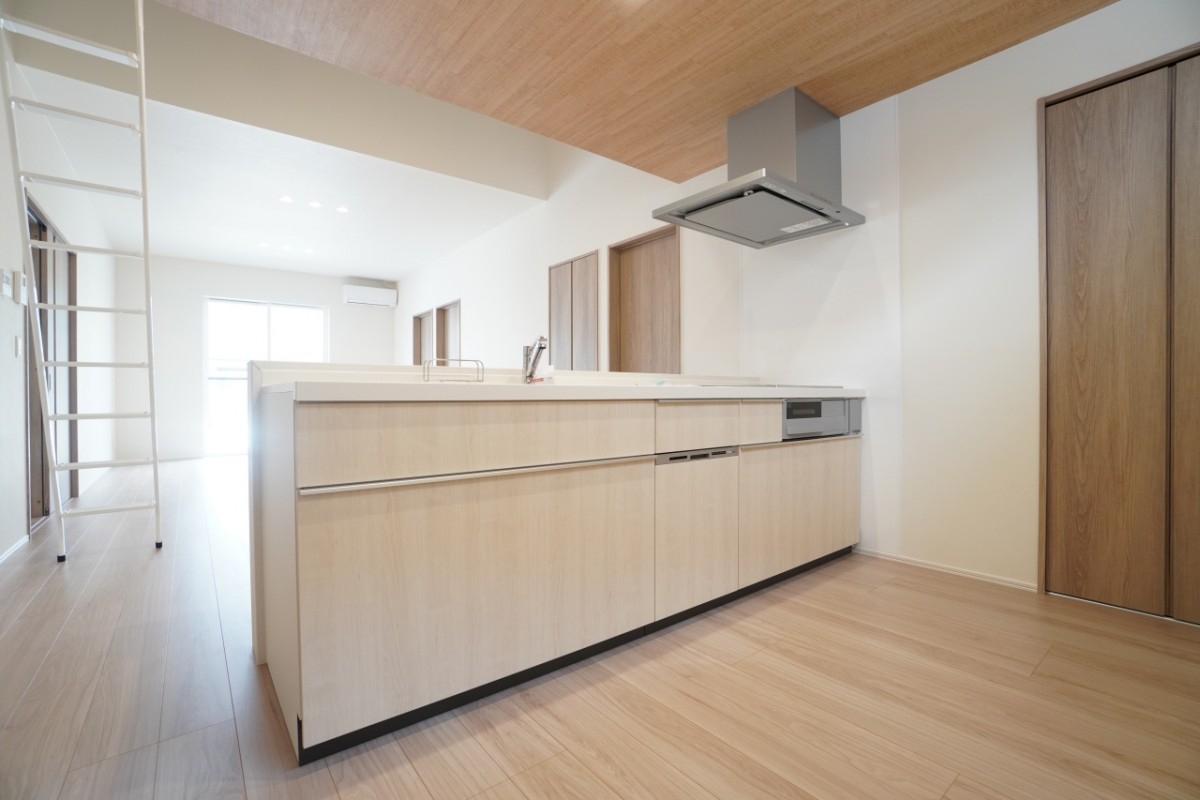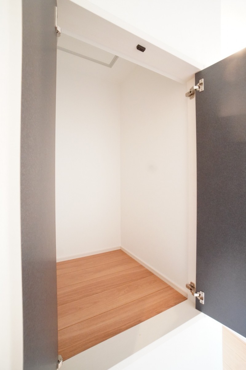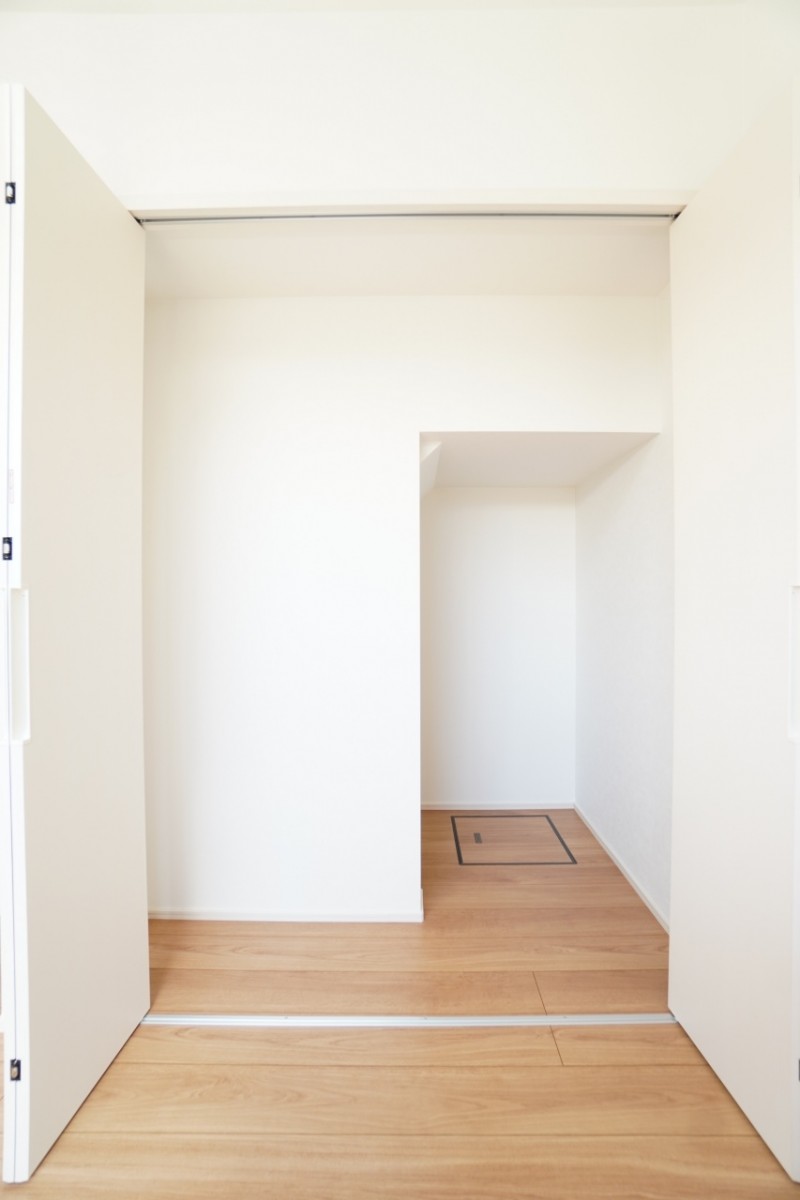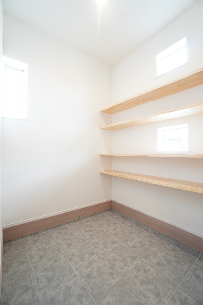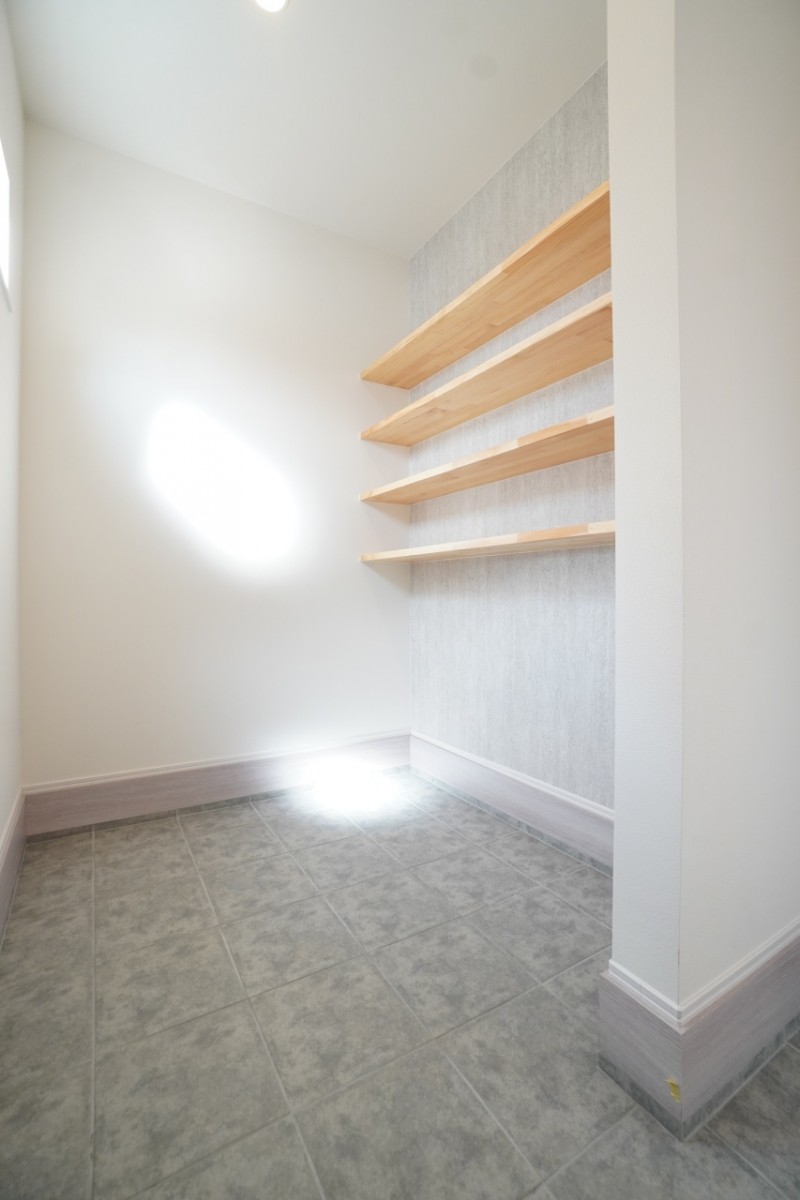 各所に収納スペースがあり、家事動線も最短距離なところがこの物件の最大のポイント。