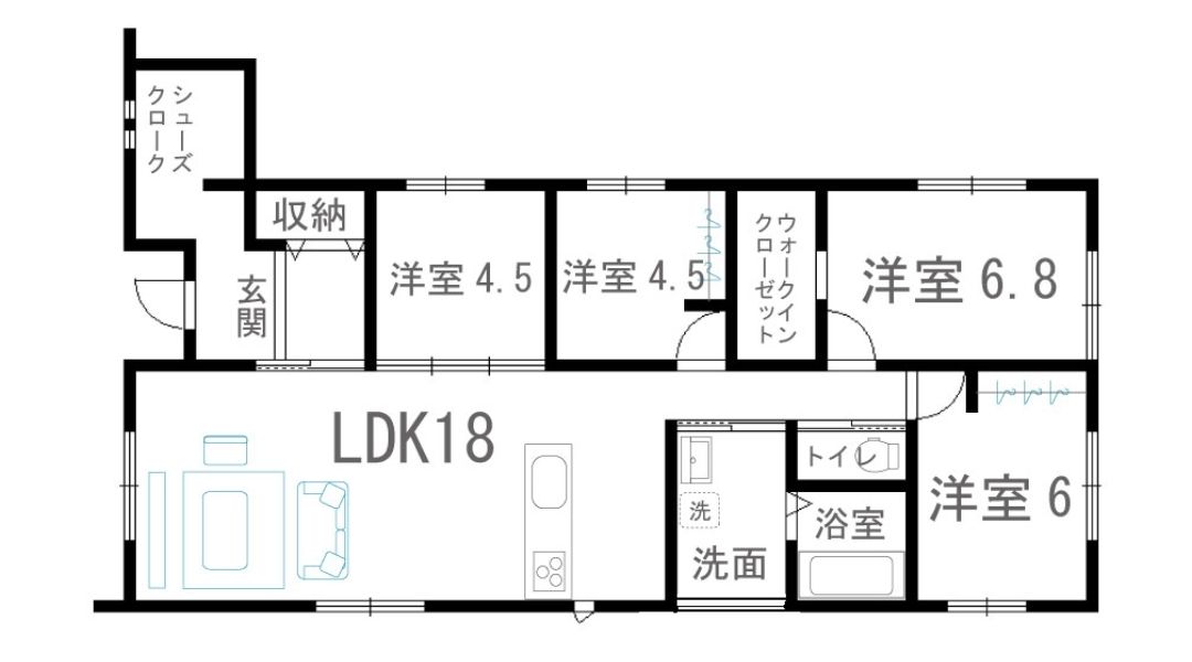 建売ながら、1階は洋室とつなげれば20帖の空間に、2階洋室はすべて7帖以上と広々としています。