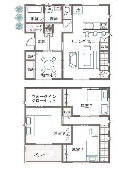 17帖のリビング。室内も可愛いデザイン。バルコニーも充分な広さ。