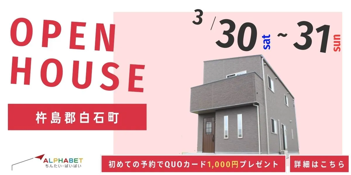 3/30(土)・3/31(日)のオープンハウスは杵島郡・有田・唐津・佐世保・みやま・柳川で開催致します!
