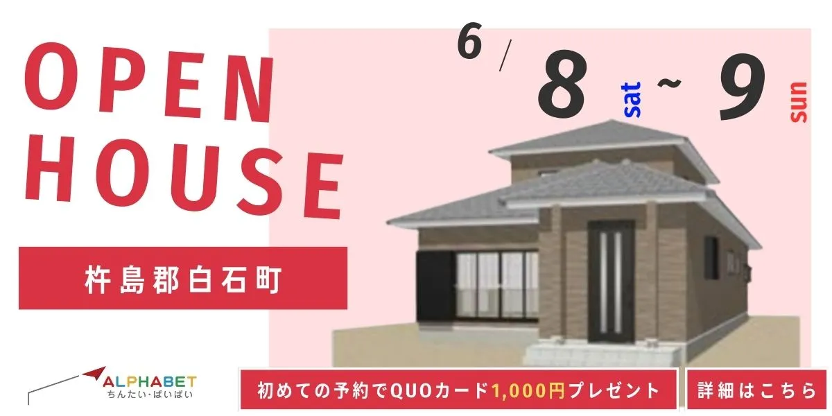 6/8(土)・6/9(日)のオープンハウスは白石・有田・伊万里・神埼・川棚・佐世保で開催致します!