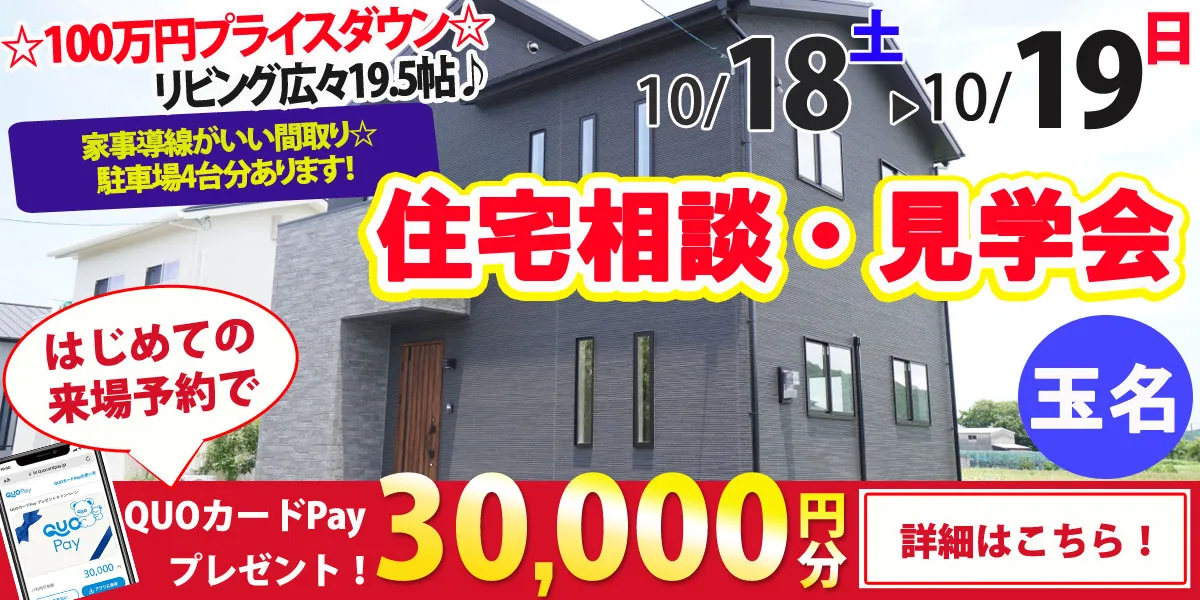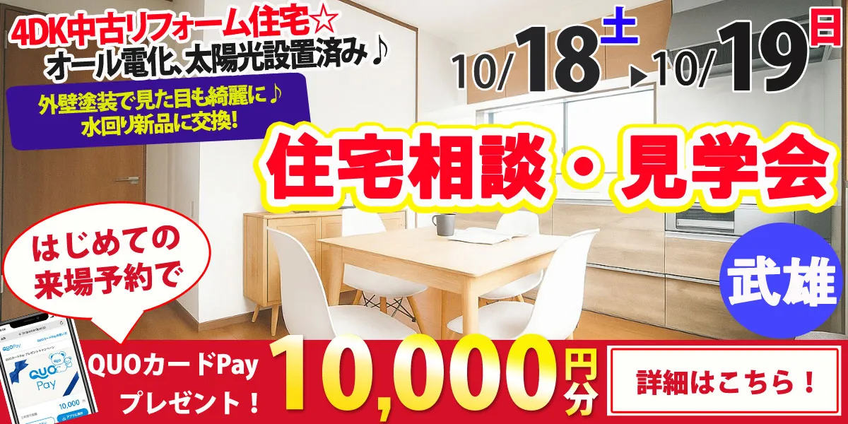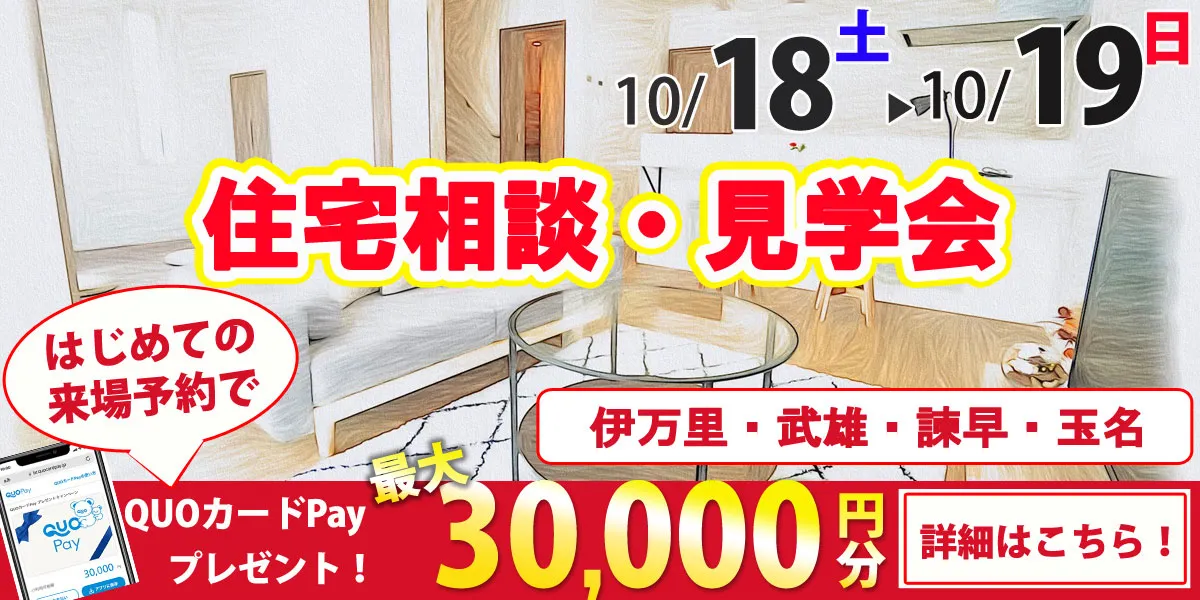 10/18(土)・10/19(日)のオープンハウスは伊万里・武雄・諫早・玉名で開催致します!