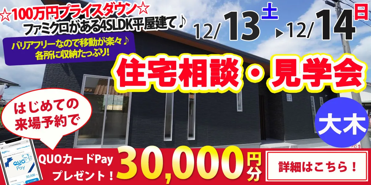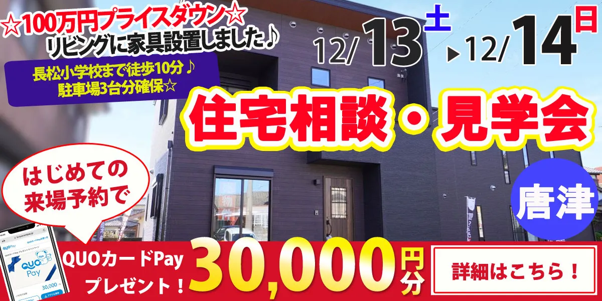 12/13(土)・12/14(日)のオープンハウスは大町・小城・唐津・佐世保・大木で開催致します!