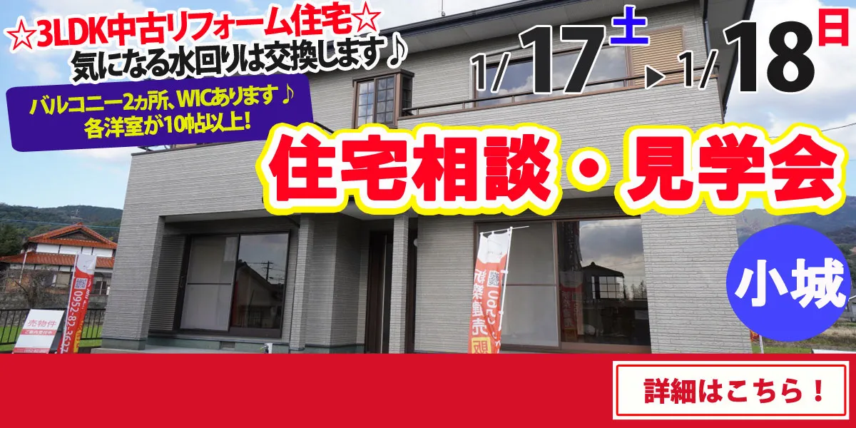 1/17(土)・1/18(日)のオープンハウスは鹿島・伊万里・小城・佐世保・八女で開催致します!